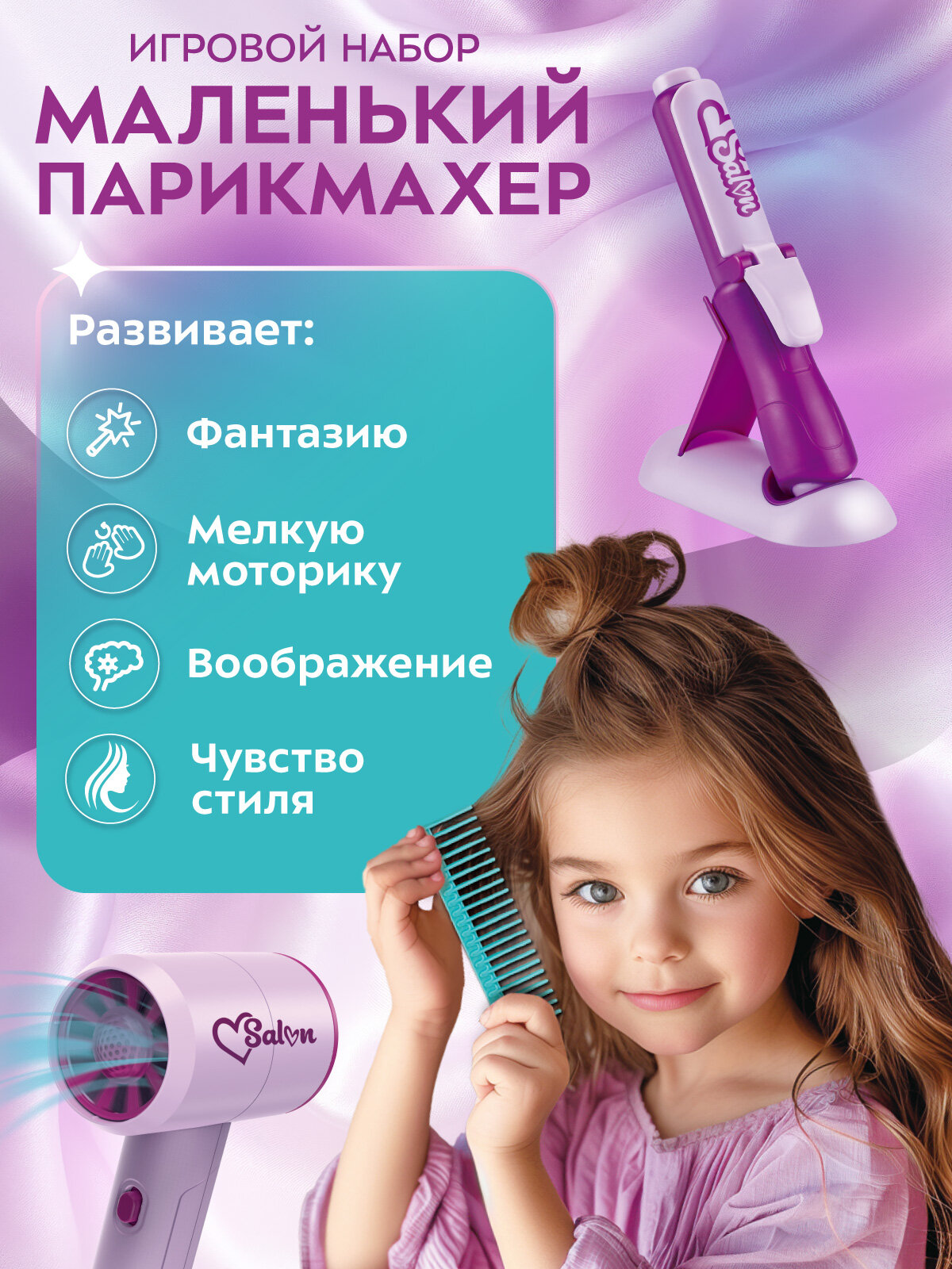 Фен детский игровой, стилист, парикмахер, моделируем прически, JB0213088