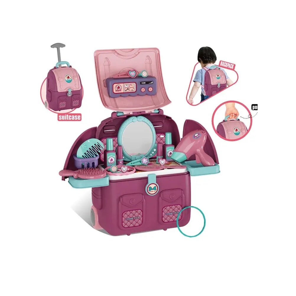 Детский набор парикмахера салон красоты Модница с игрушечной косметикой и феном в чемодане, 17 предметов
