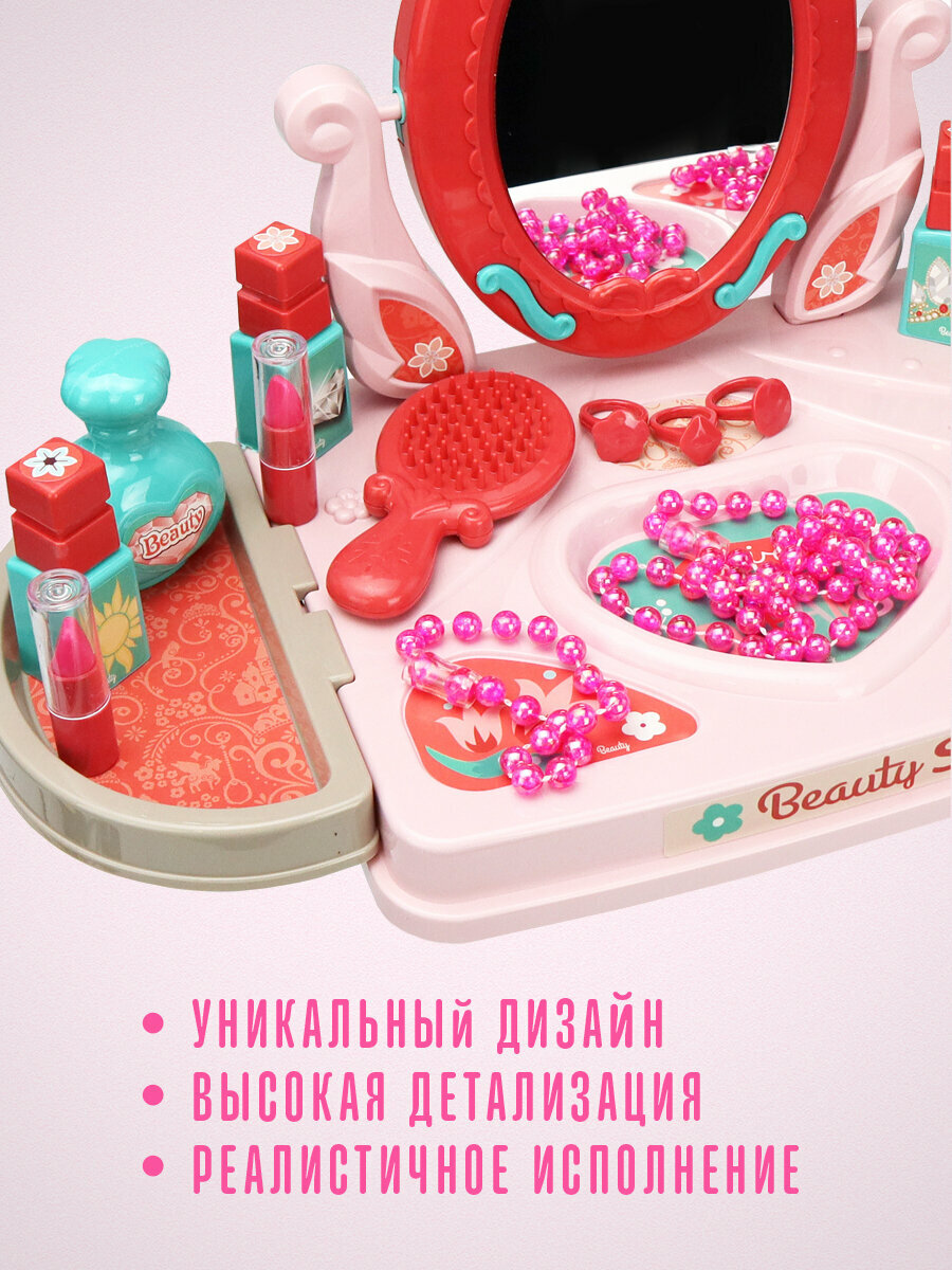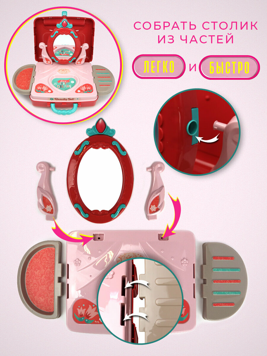 Туалетный столик для девочек с зеркалом и стулом малиновый