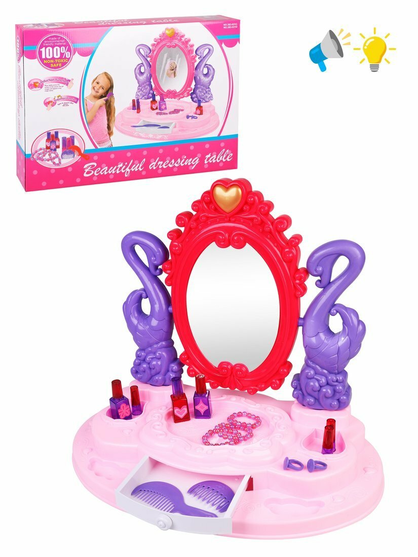 Туалетный столик для девочек с зеркалом и стулом малиновый
