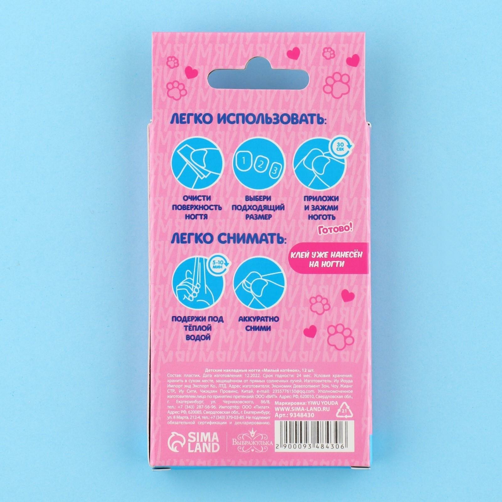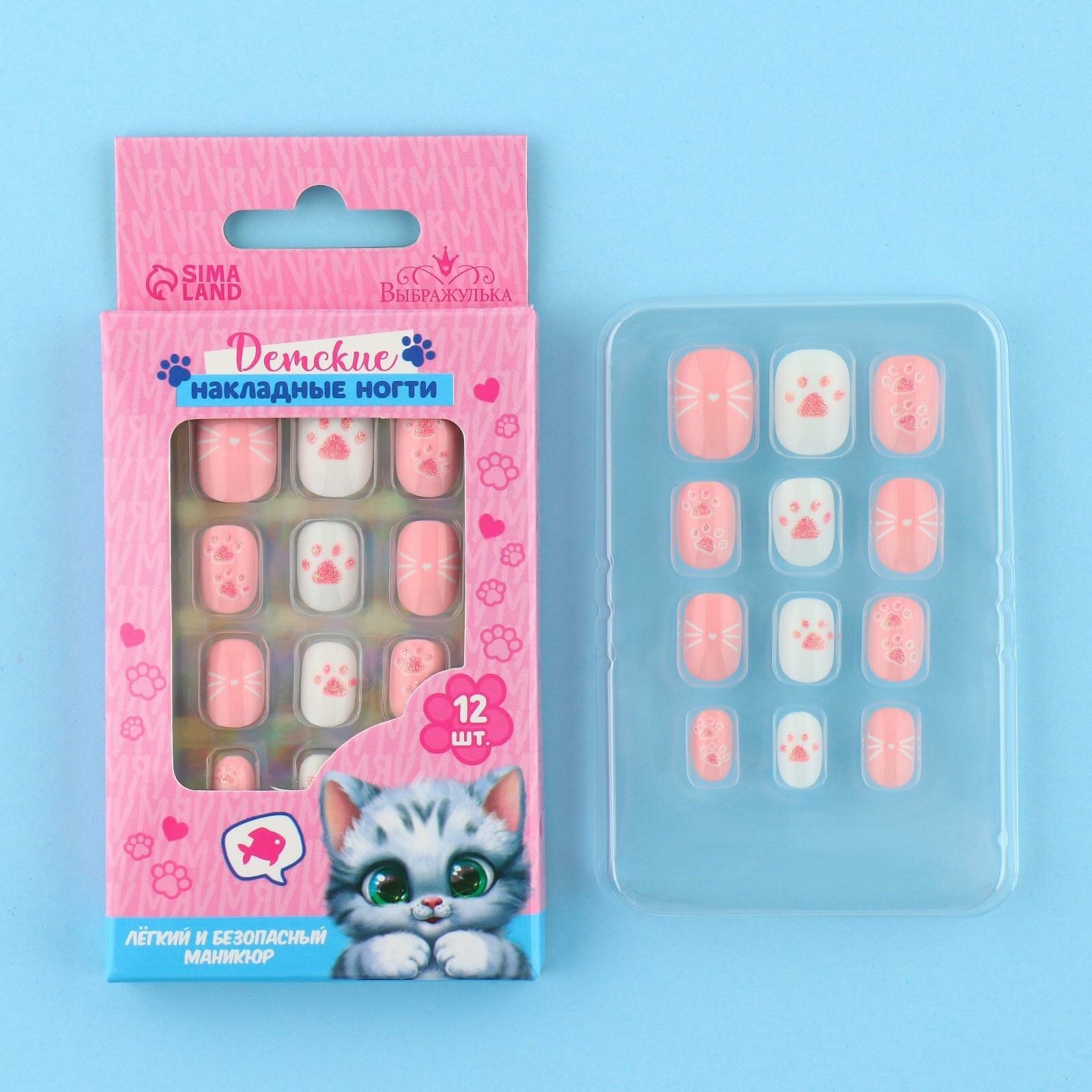 Детские накладные ногти Выбражулька "Милый котенок", в наборе 12 шт, пластик, розовый интересное:
