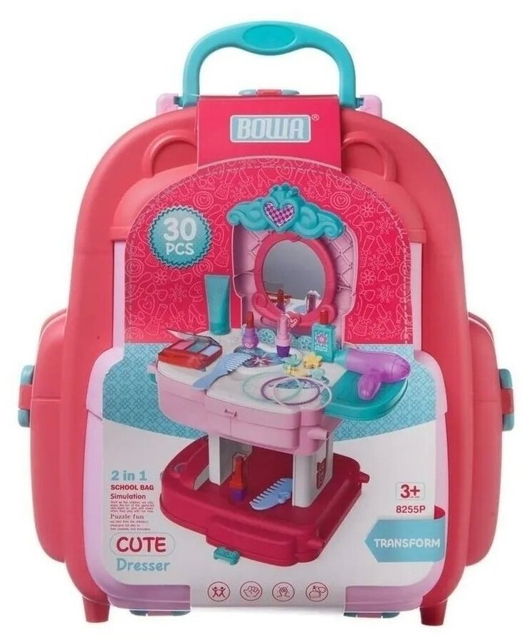 Игровой набор Трюмо 24 х 34 х 48 см с косметикой и феном в рюкзаке для девочки интересное: