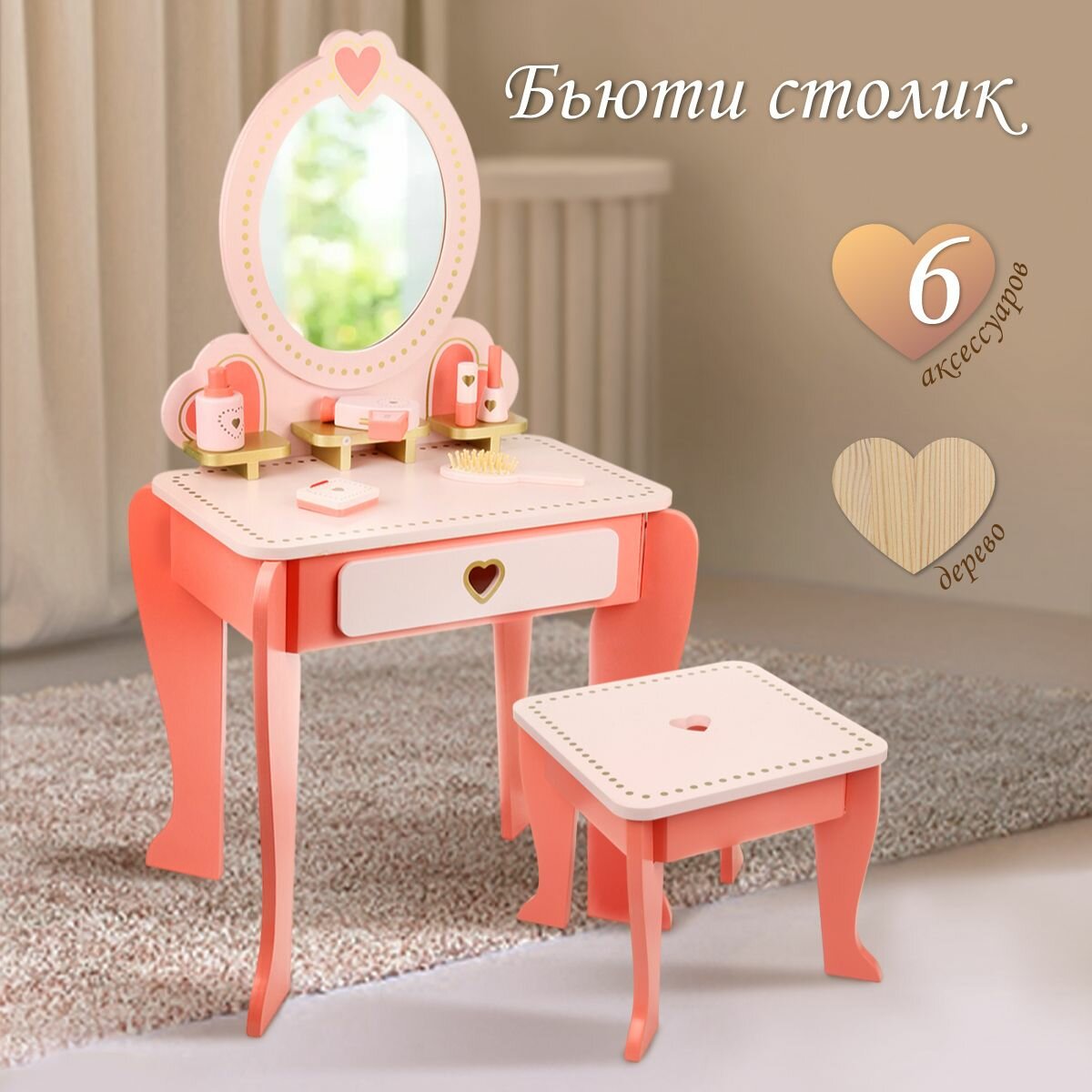 Детский туалетный столик с зеркалом, набор стилиста "Маленькая принцесса", Veld Сo / Игровой набор Салон красоты для девочек, 134457 интересное: