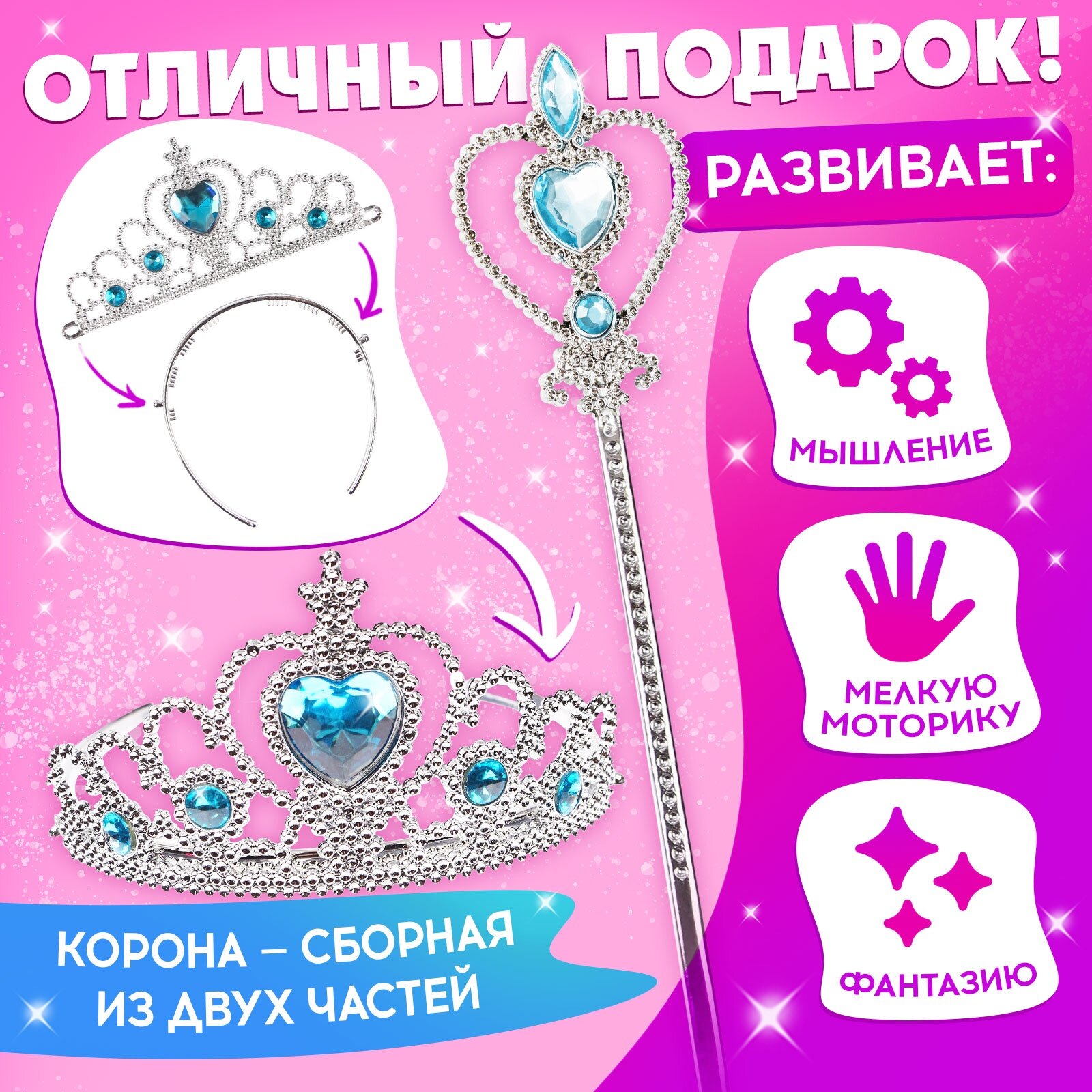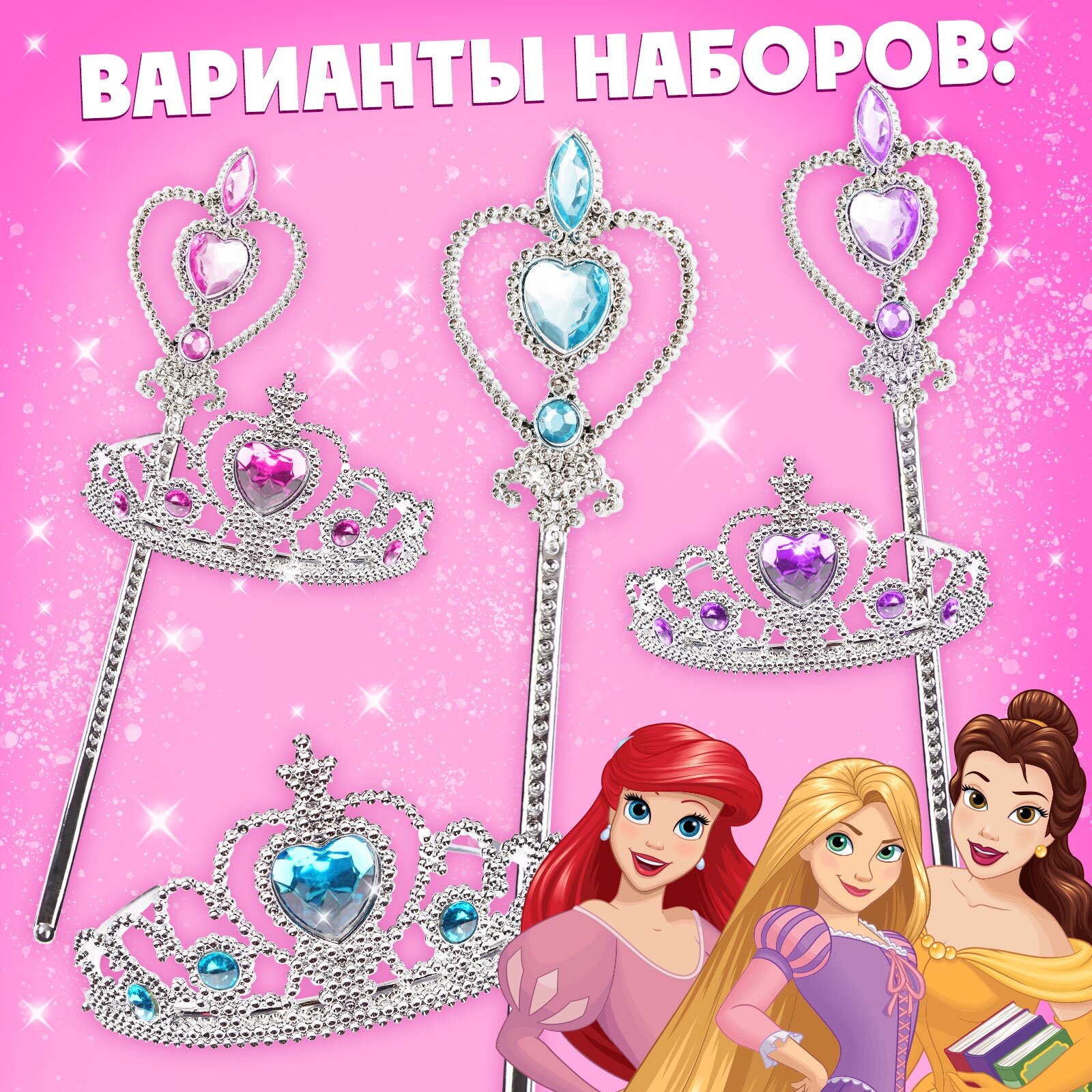 Набор украшений Disney "Самая красивая", голубой/розовый/фиолетовый, на блистере интересное: