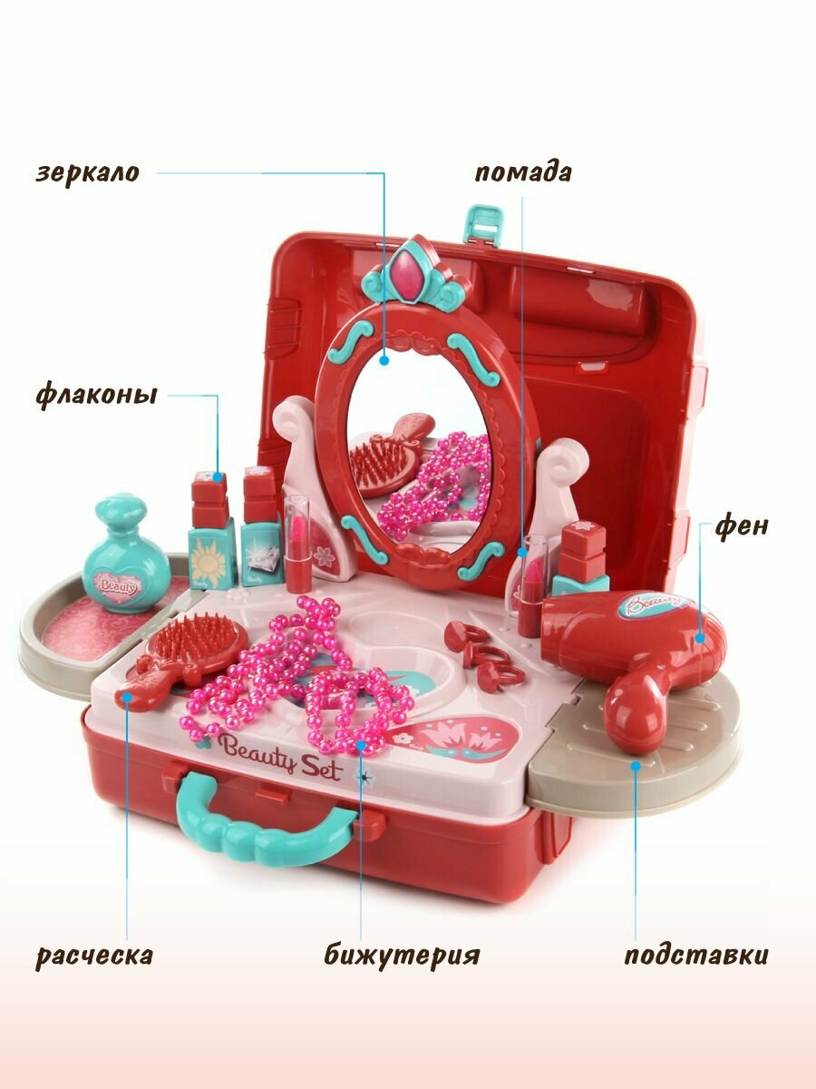 Детский туалетный столик с зеркалом со светом и звуком, Veld Сo / Игровой набор Салон красоты для девочек 126553