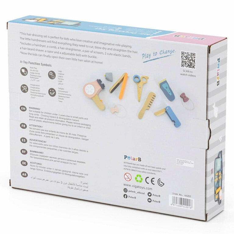 Купить VIGA PolarB Набор Парикмахер 10 предметов (дерево) в поясной сумке 44201 с 3 лет