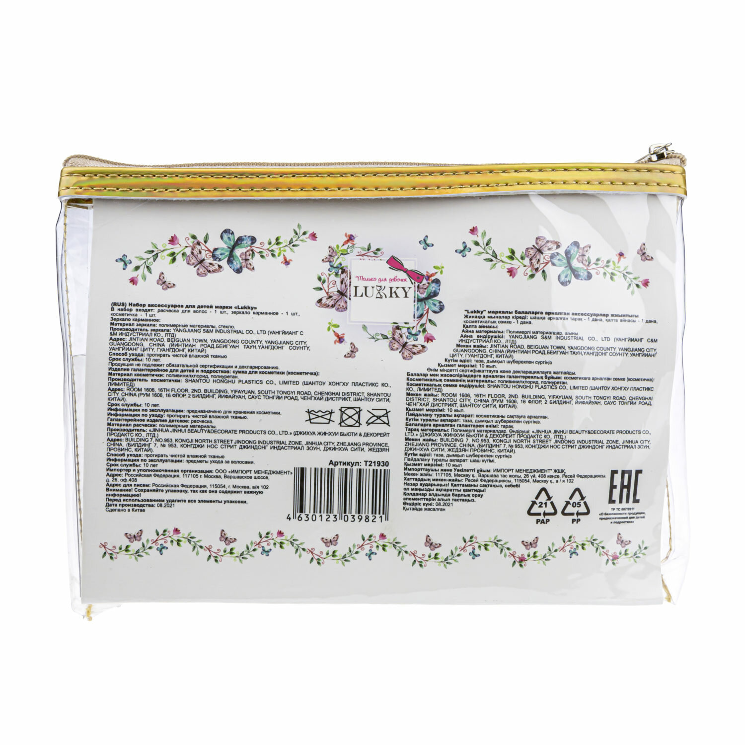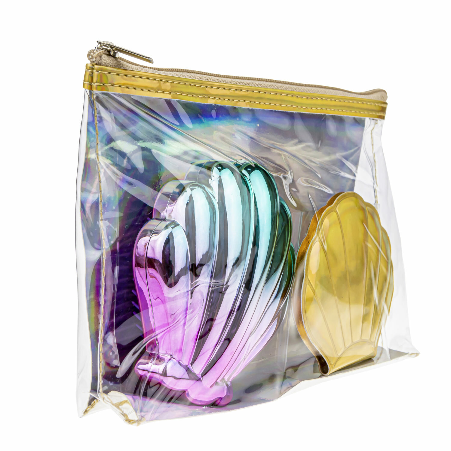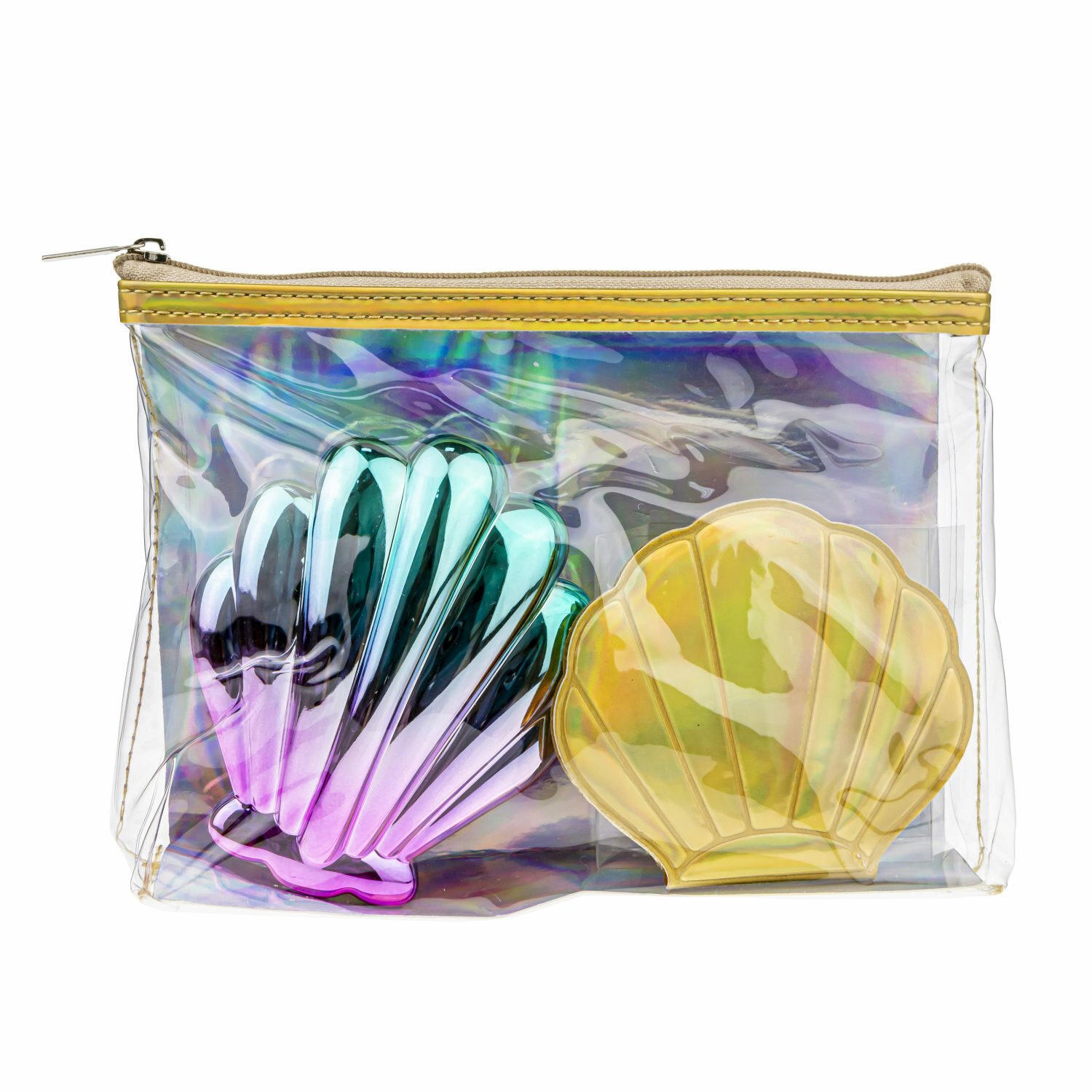 Набор Lukky 3 в 1: расческа+зеркальце "Ракушки" в косметичке, золотистый интересное: