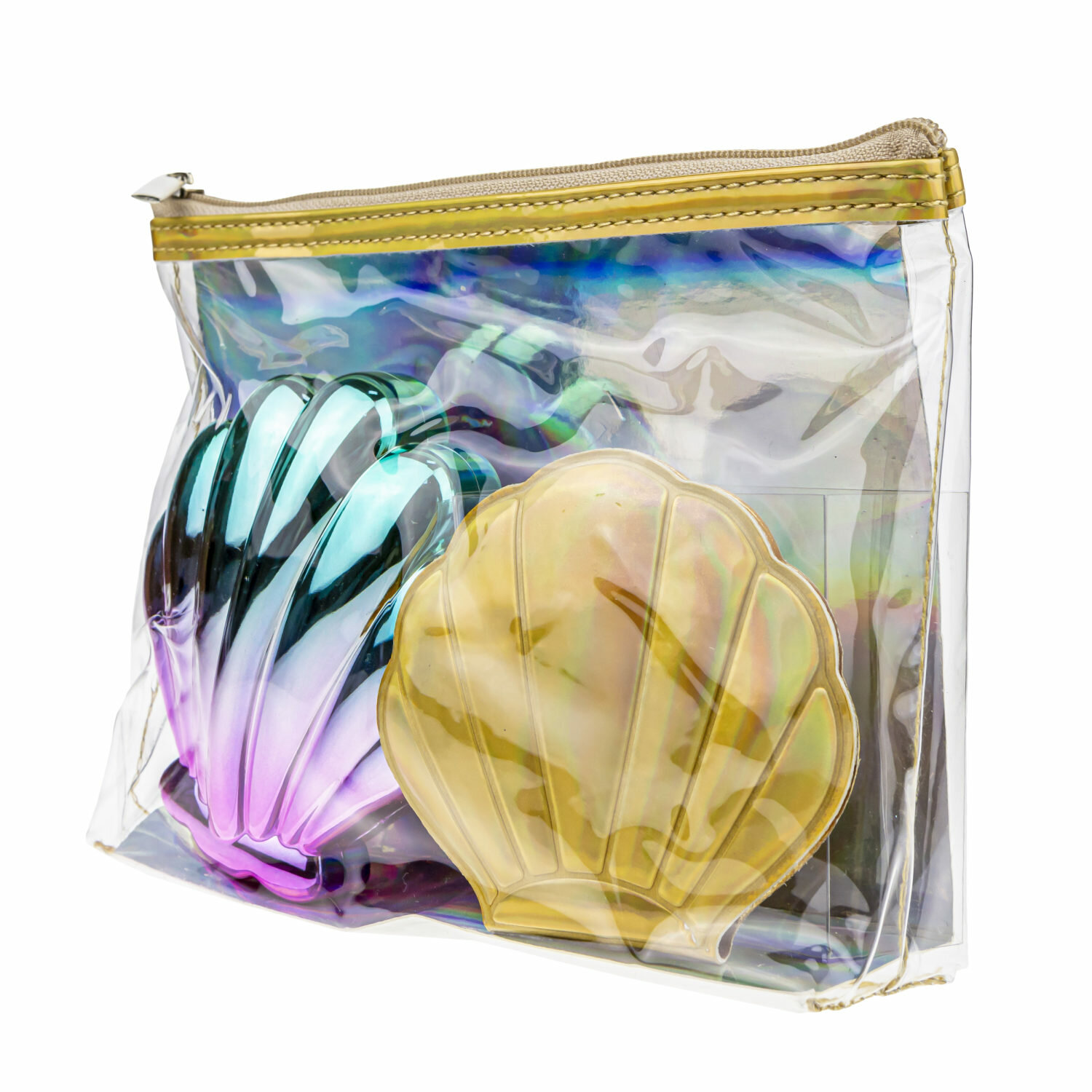 Купить Набор Lukky 3 в 1: расческа+зеркальце "Ракушки" в косметичке, золотистый