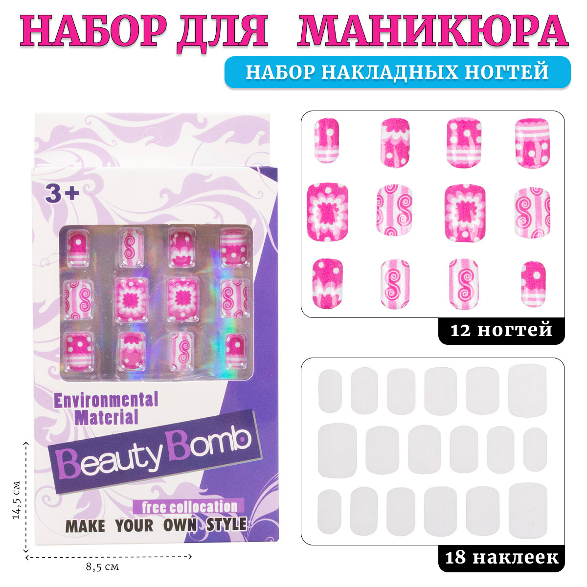 Детские накладные ногти "Фламинго", 12 шт, возраст: детский, тематика праздника: универсальная тематика