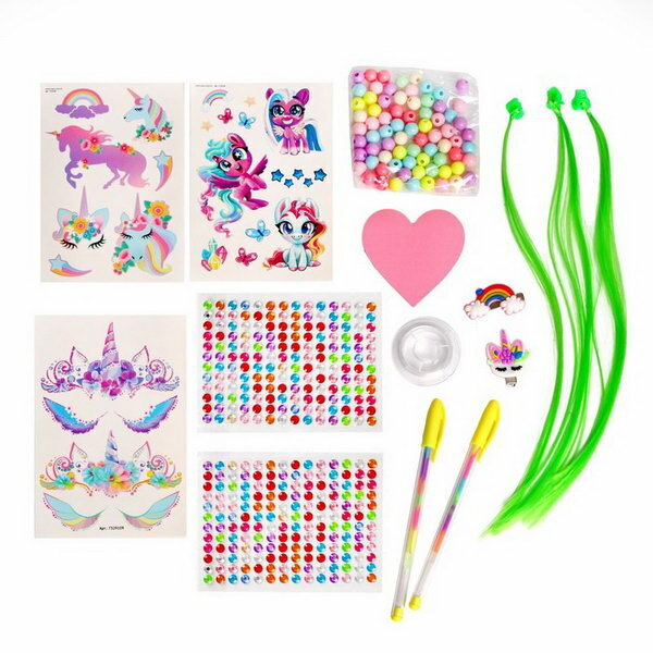 Купить Набор с прядями, тату, стразами, в сумочке, для создания: аксессуары для волос