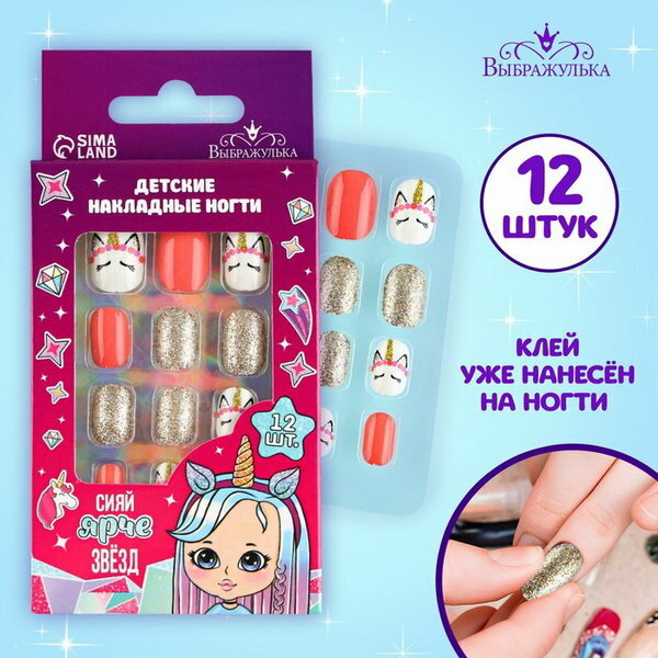 Купить Детские накладные ногти "Сияй ярче звёзд", 12 шт, возраст: детский