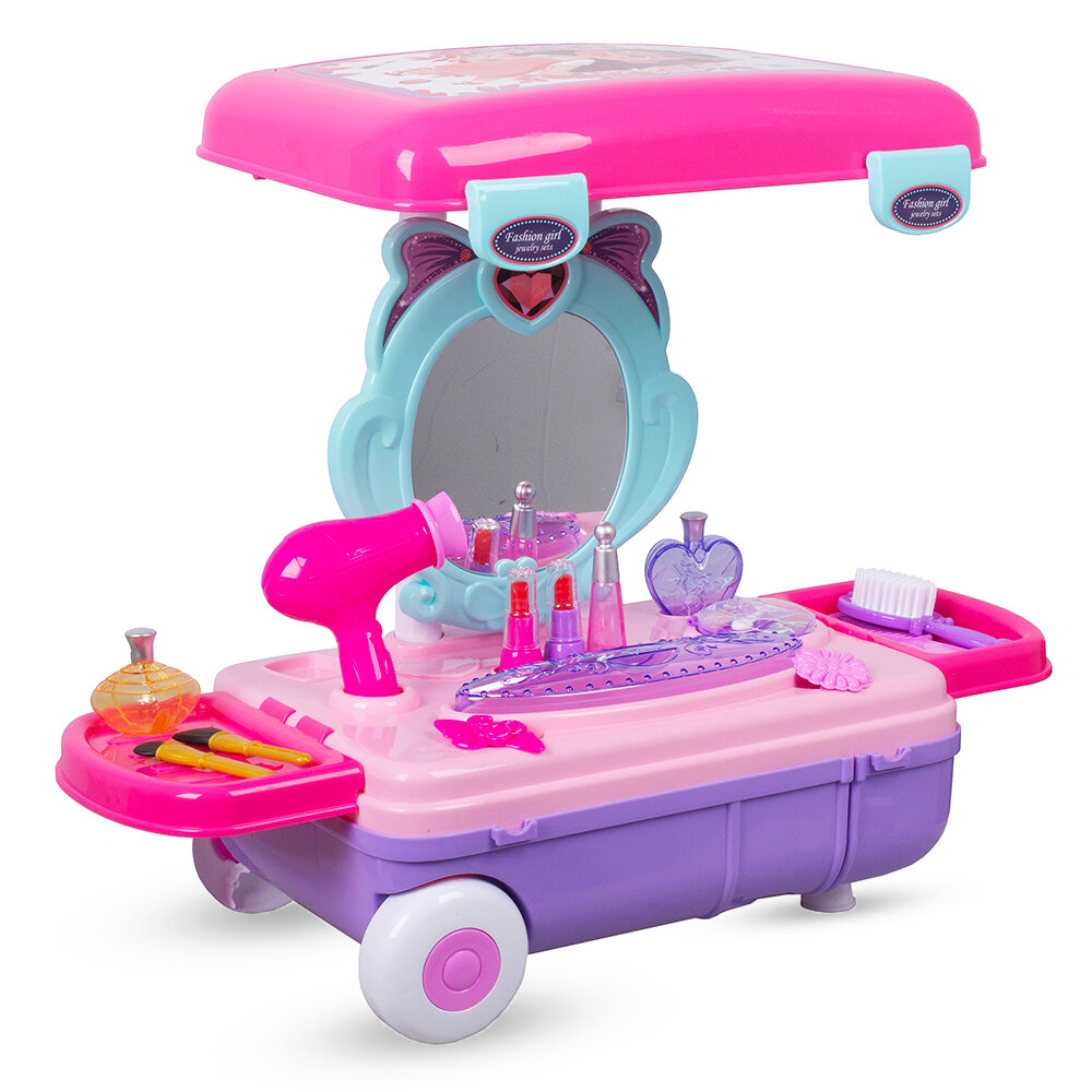 Туалетный столик для девочек с зеркалом и стулом малиновый