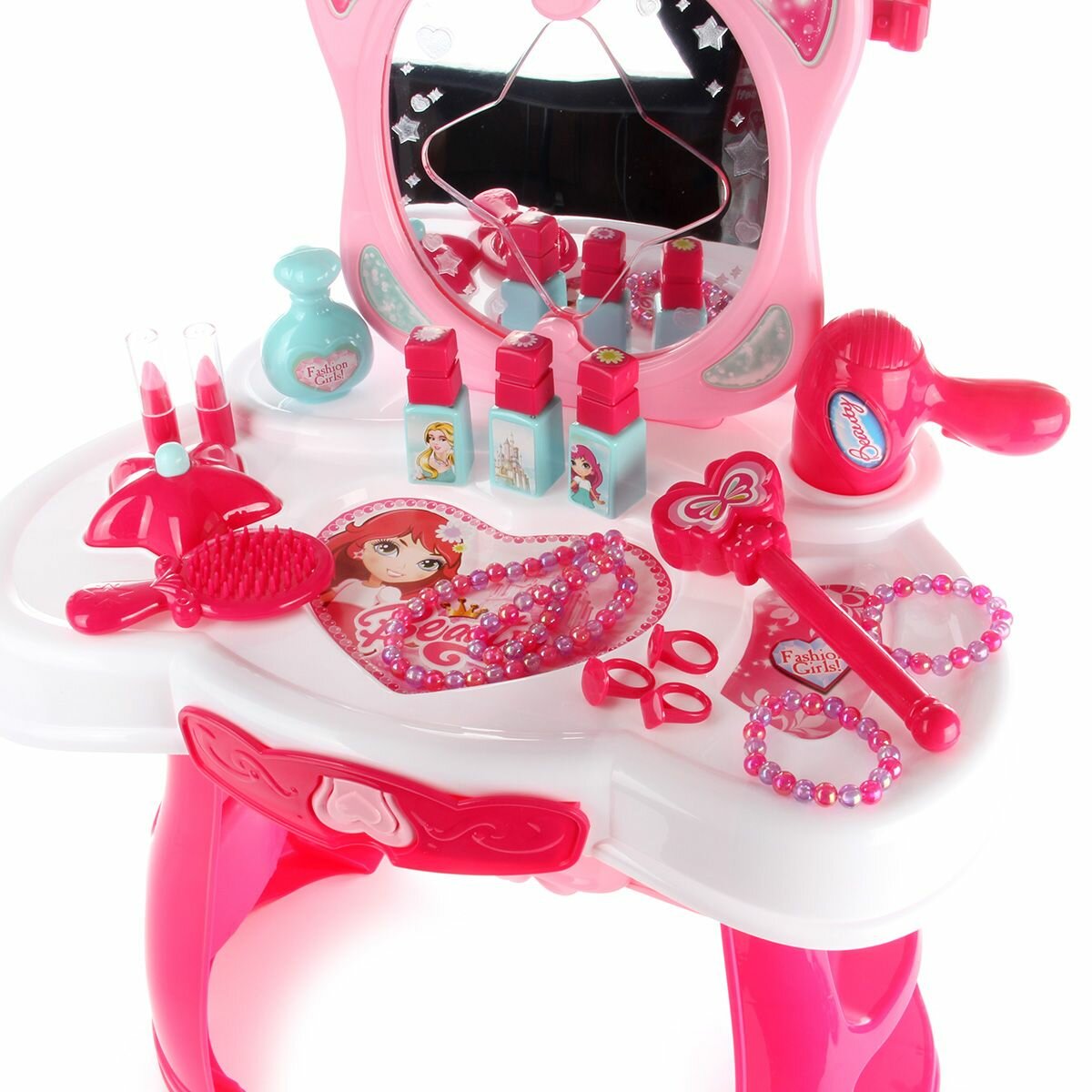 Туалетный столик для девочек с зеркалом и стулом малиновый