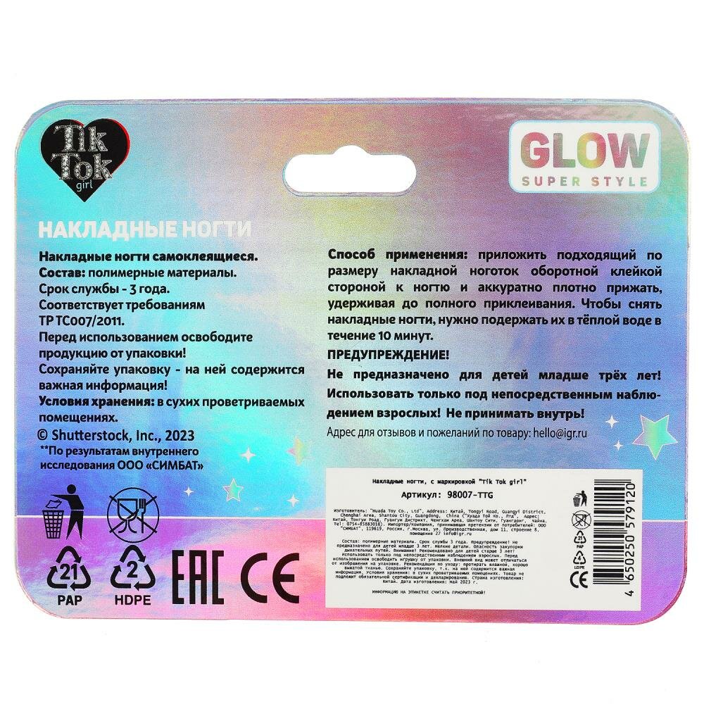 Ногти накладные для девочек TIK TOK GIRL 98007-TTG интересное: