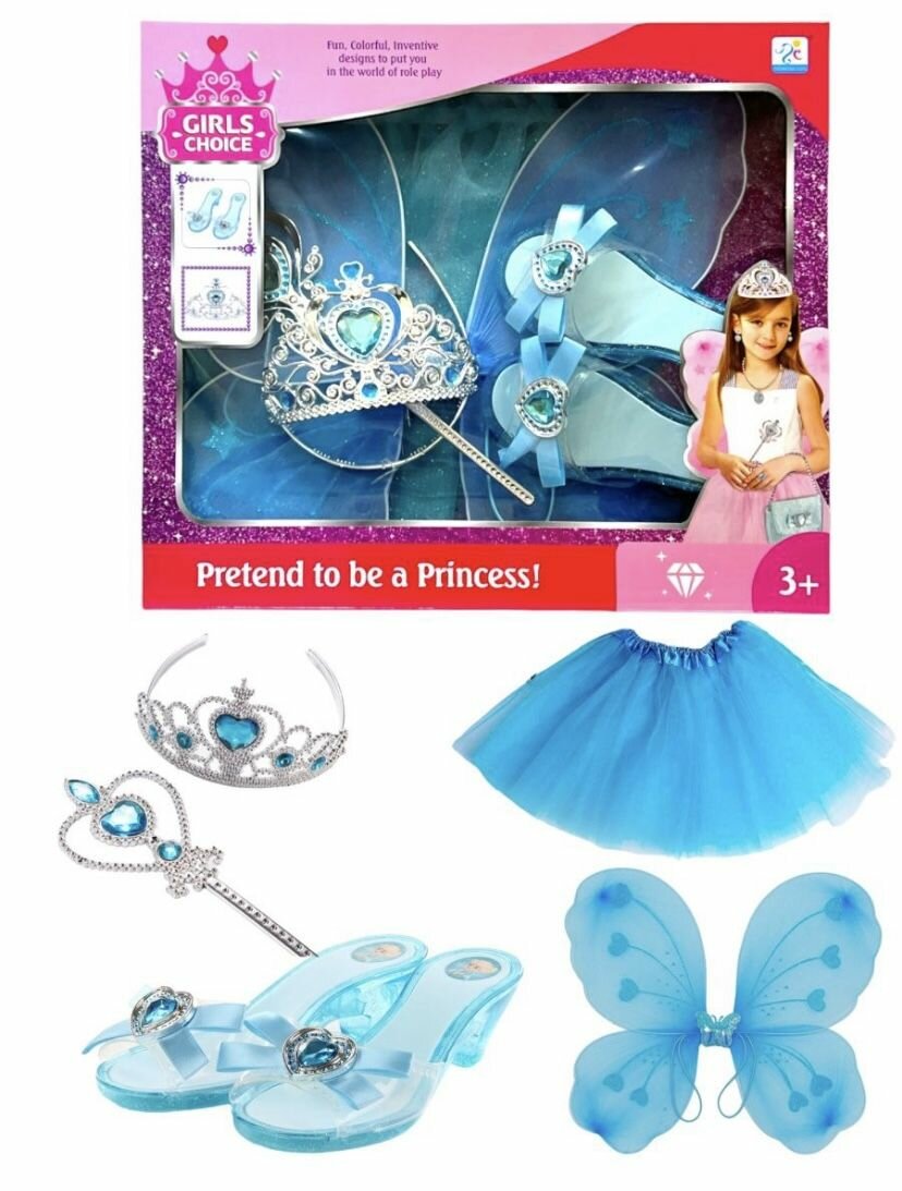 Набор для принцессы с туфлями, короной, юбкой и крыльями гол интересное: