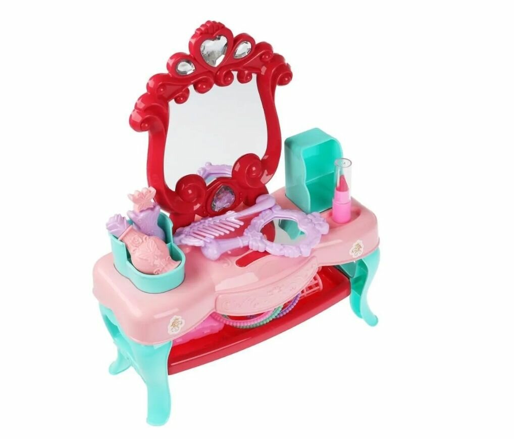 Туалетный столик для девочек с зеркалом и стулом малиновый