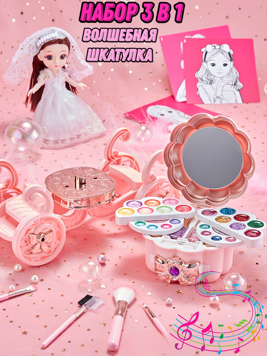 Набор Волшебная шкатулка, для девочек, игровой столик, косметика, для макияжа, от 3 лет интересное: