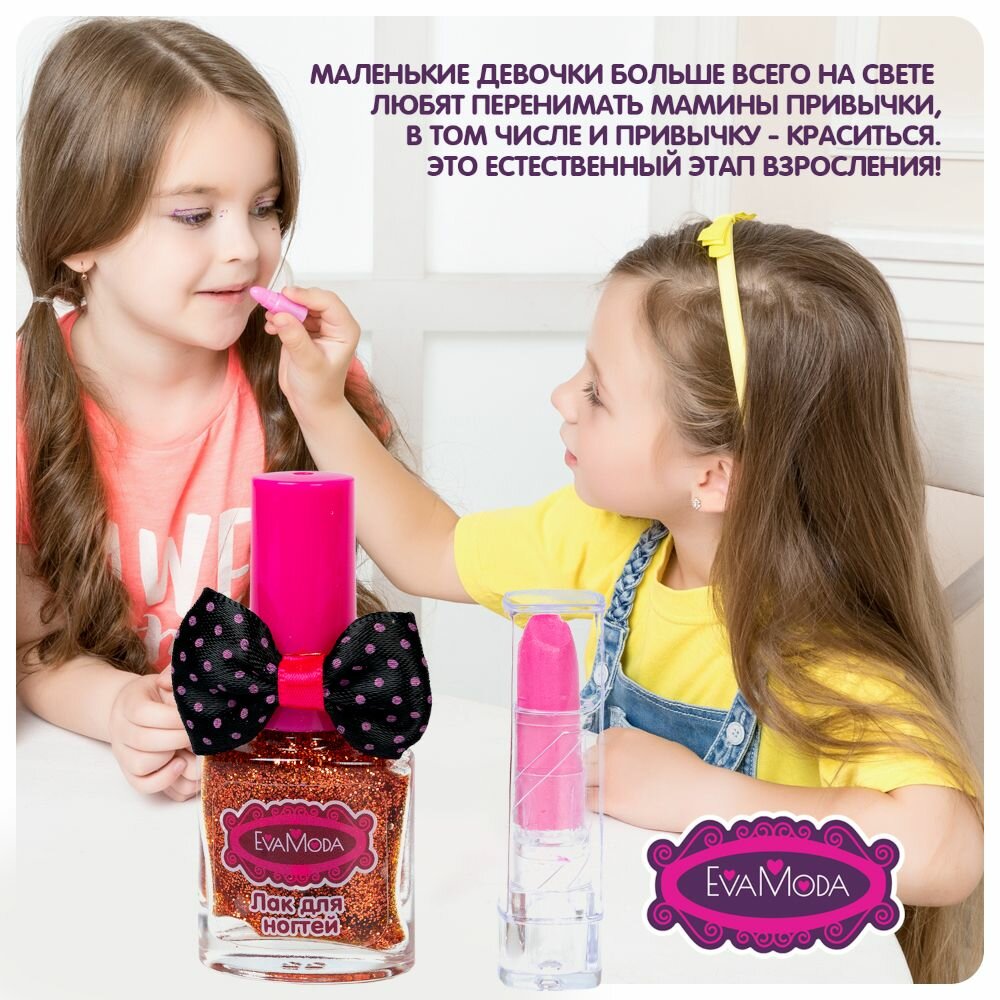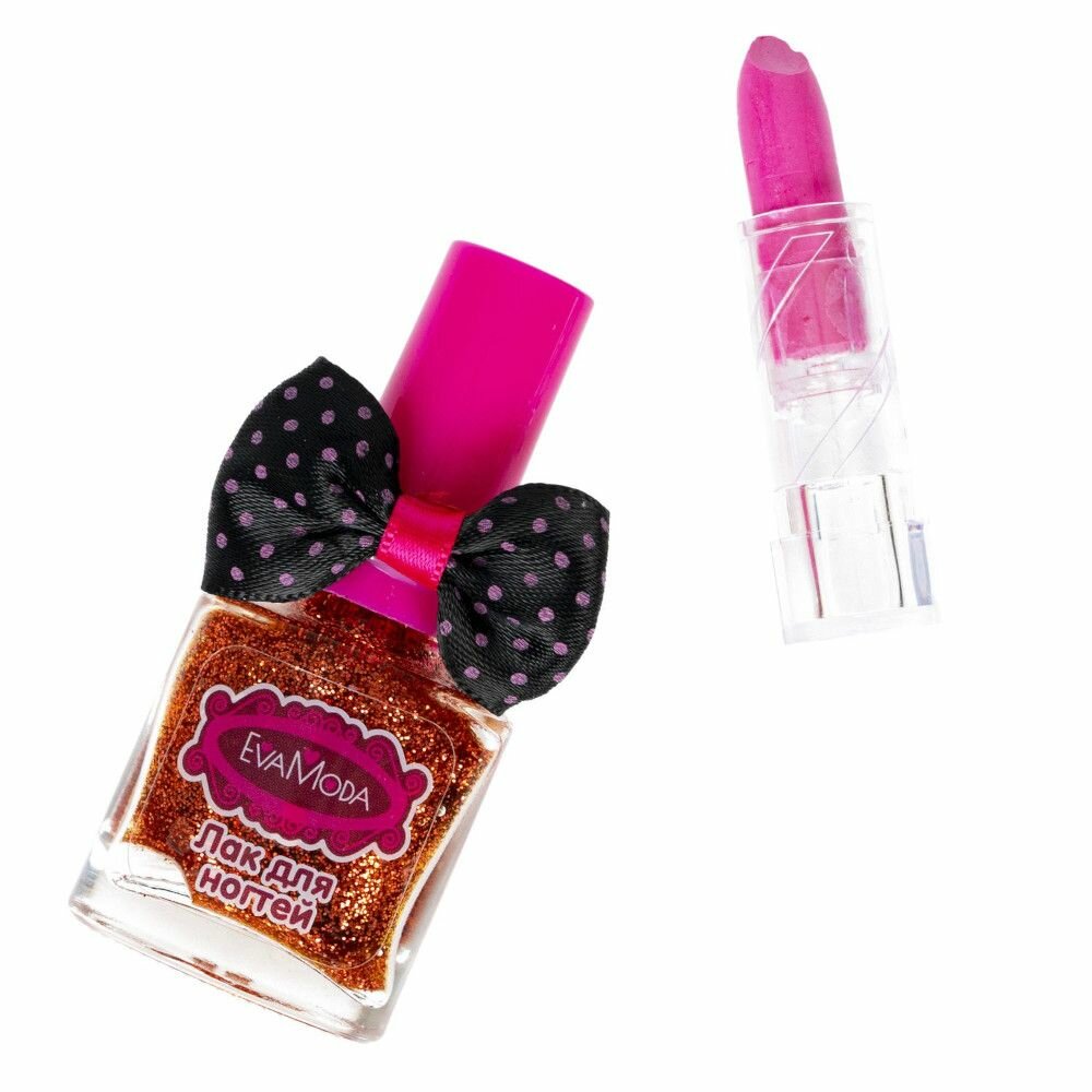 Набор детской декоративной косметики: помада и лак для ногтей с блёстками Eva Moda. Bondibon интересное: