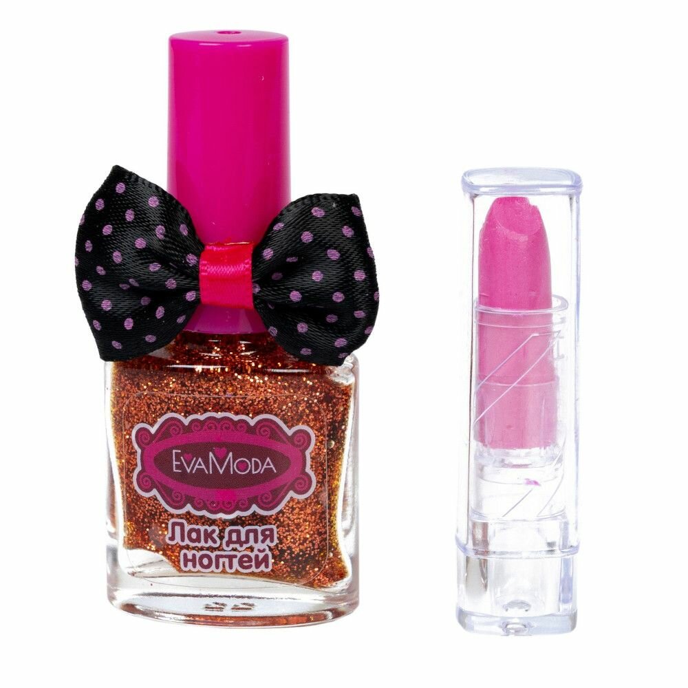Купить Набор детской декоративной косметики: помада и лак для ногтей с блёстками Eva Moda. Bondibon