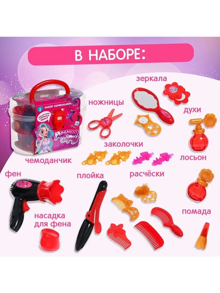 Набор парикмахера «Модный образ», красный, 19 предметов, МИК интересное: