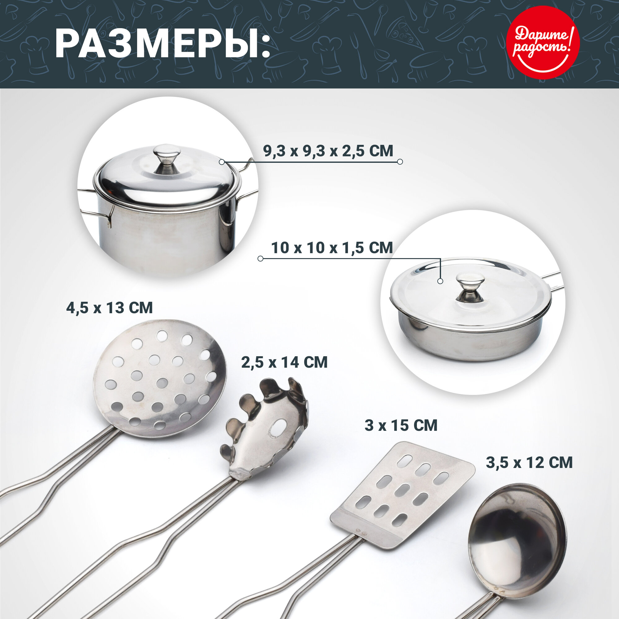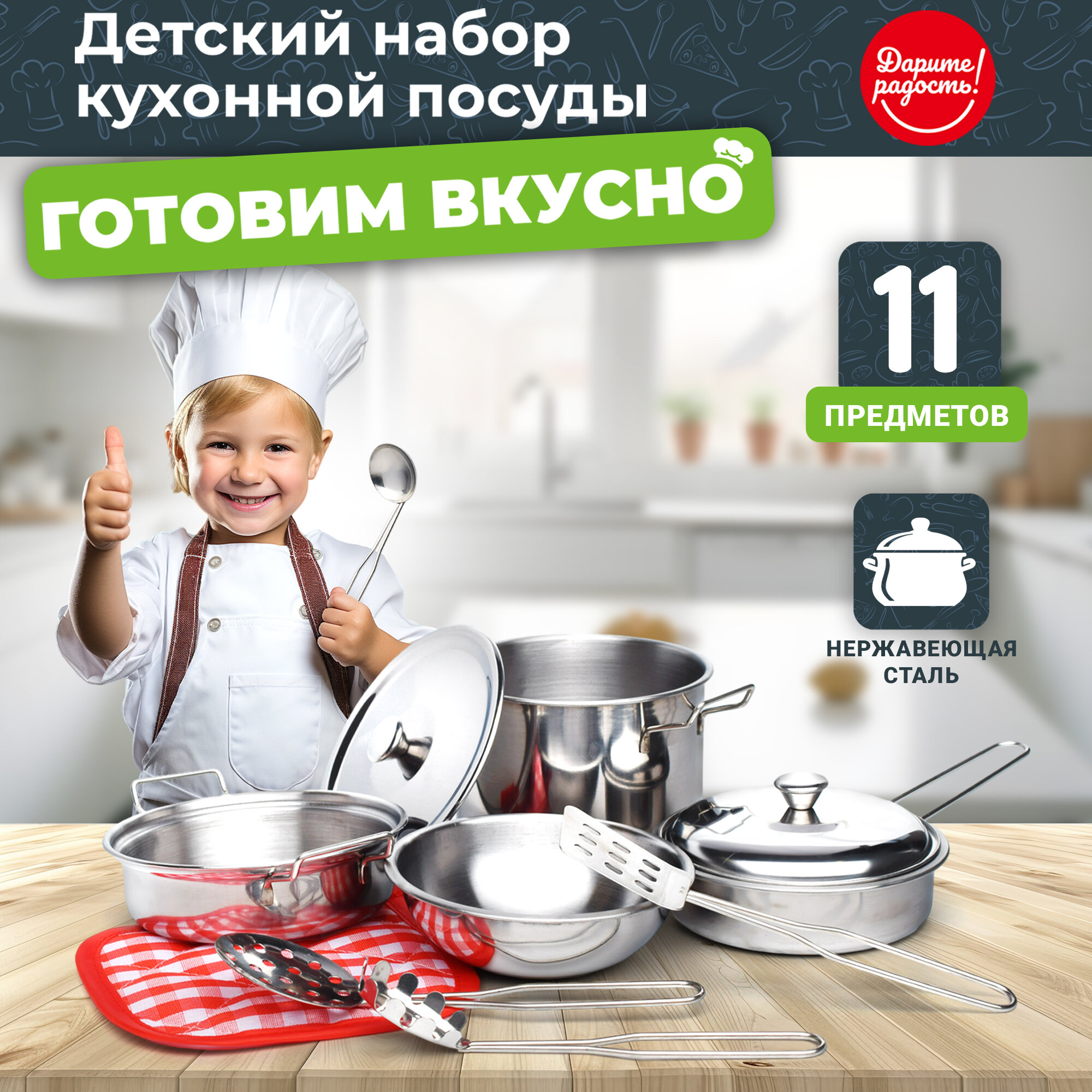 Набор игрушечной металлической посуды "Готовим вкусно" 11 предметов, нержавейка. интересное: