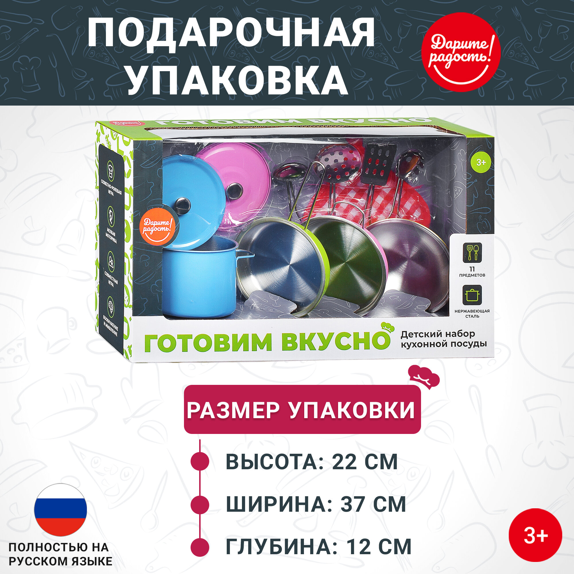 Купить Игрушечная посуда 11 предметов "Готовим вкусно-1" в подарочной коробке. Нержавейка