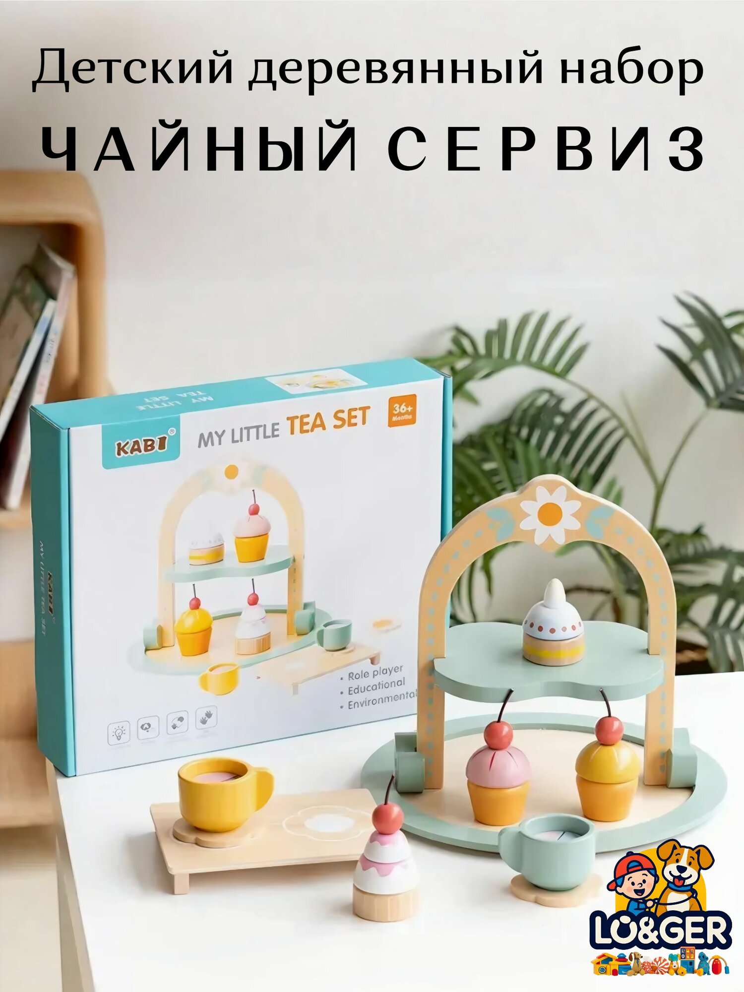 Купить Детский деревянный набор KABI "Чайный Сервиз", Детская кухня, для детей от 3 лет
