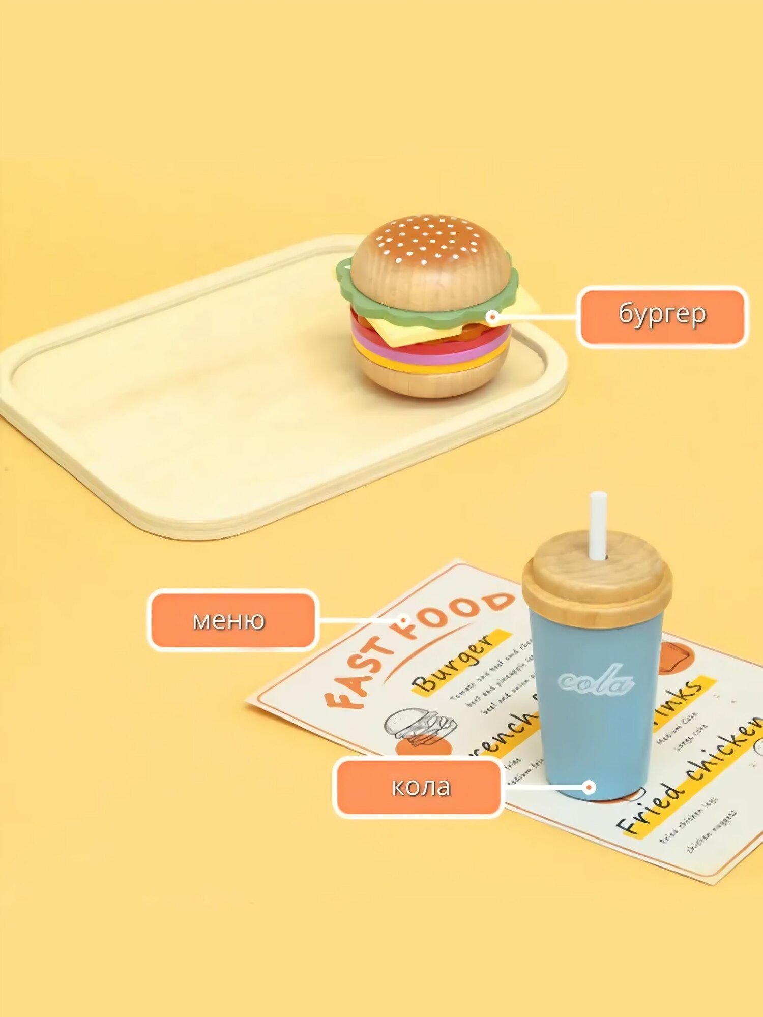 СохранитьДеревянный сюжетно-ролевой набор KABI "Бургер", для детей от 3 лет интересное: