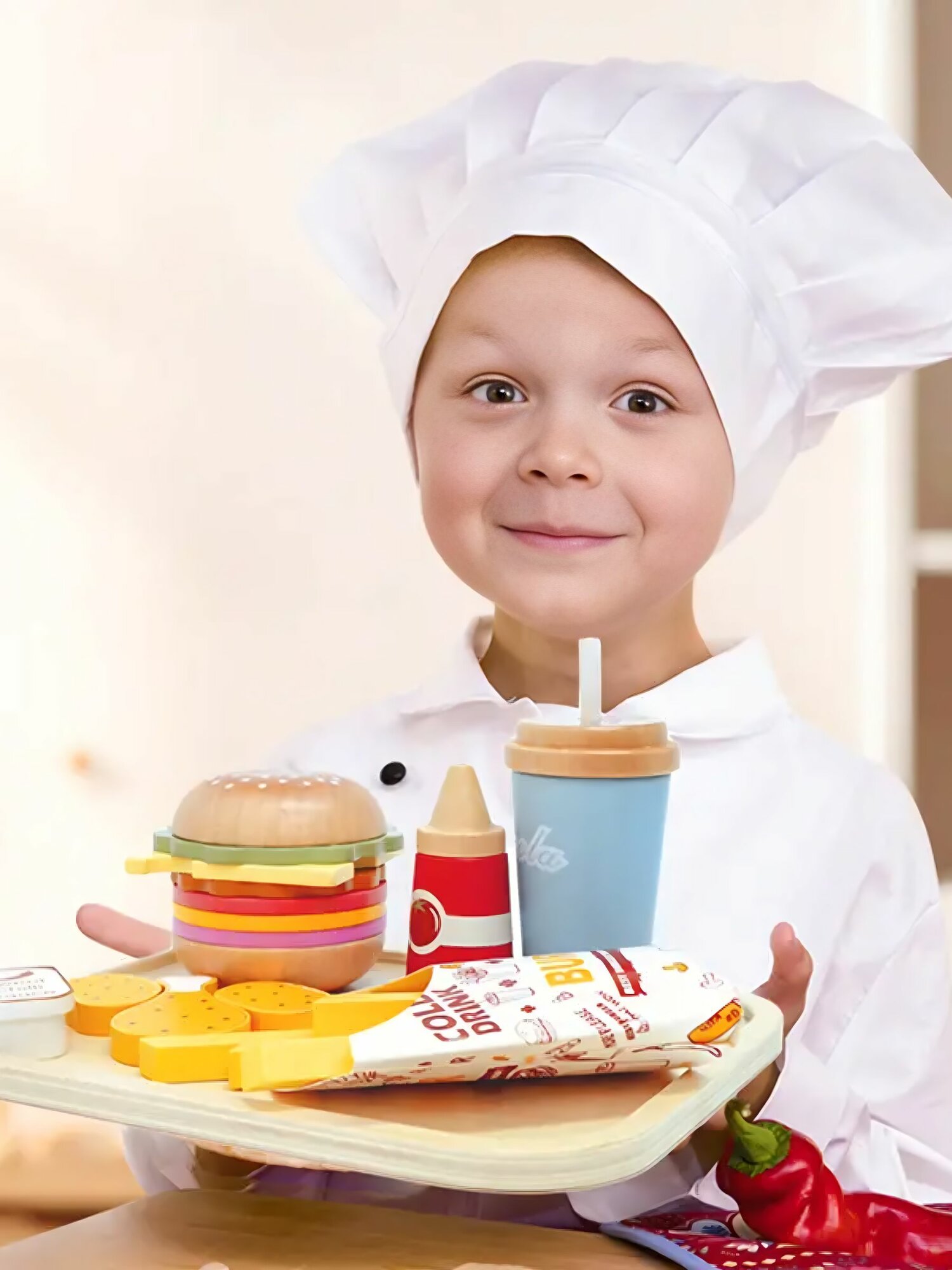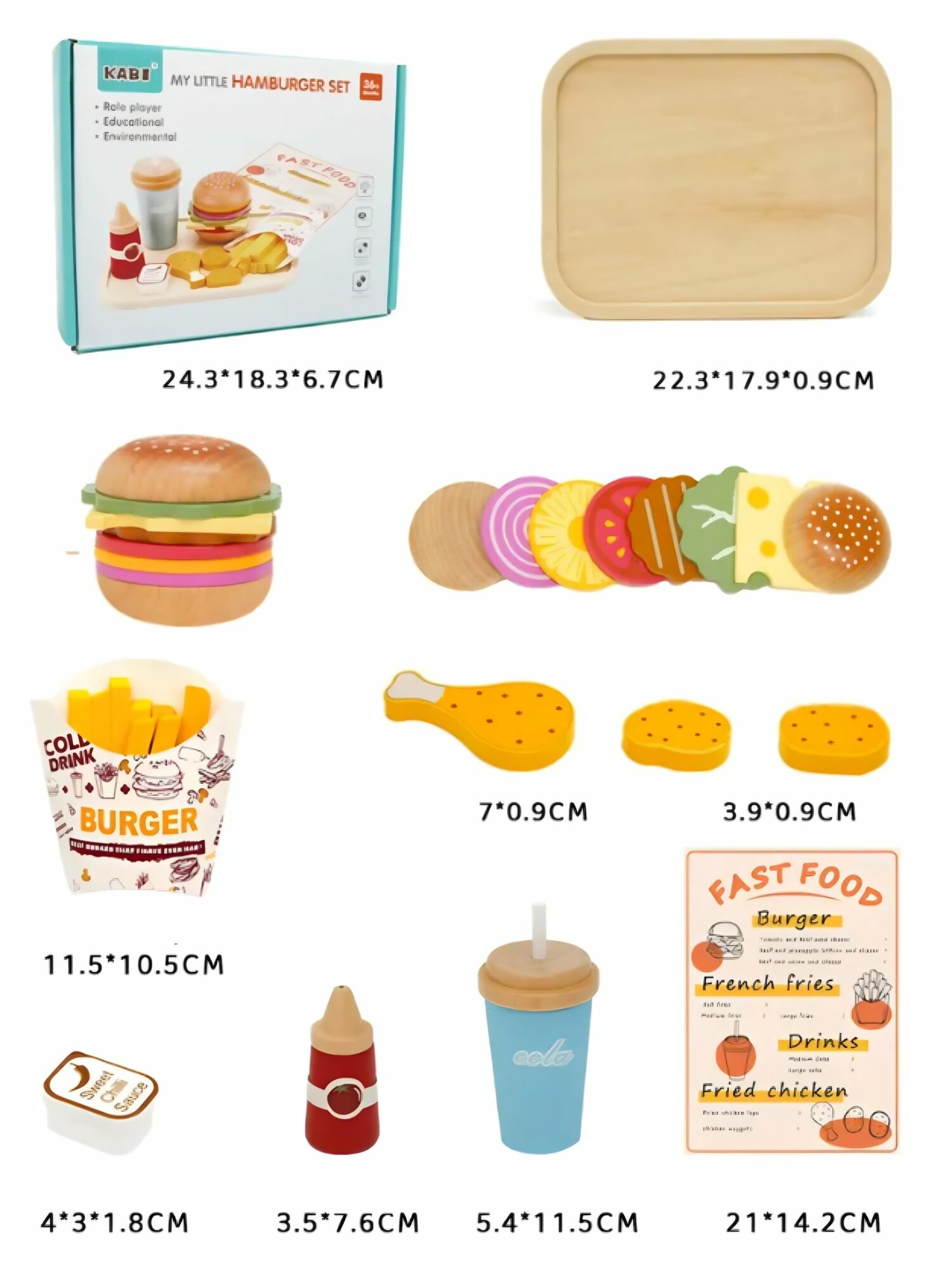 Купить Деревянный сюжетно-ролевой набор KABI "Бургер", для детей от 3 лет