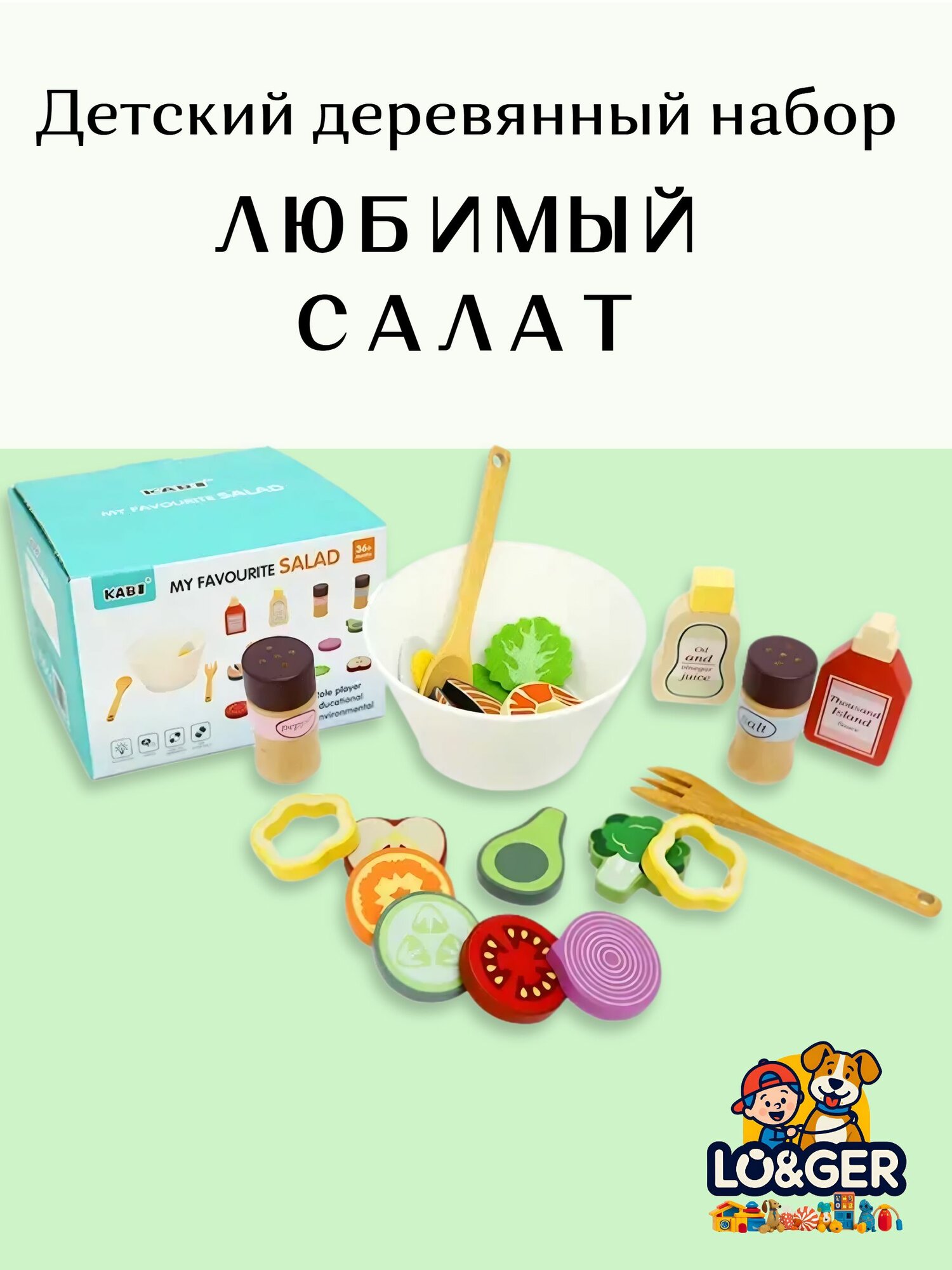 Купить Деревянный сюжетно-ролевой набор KABI "Любимый салат", для детей от 3 лет