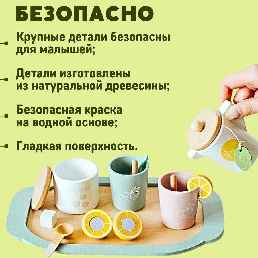 Игрушечная посуда чайный набор деревянный