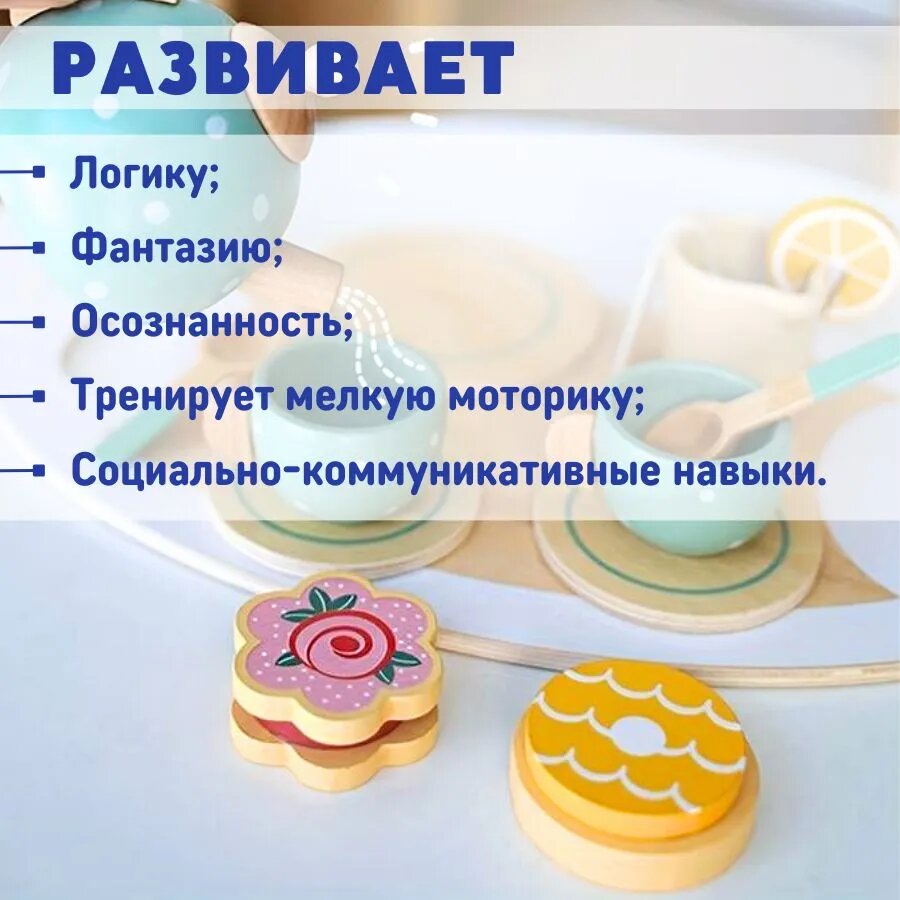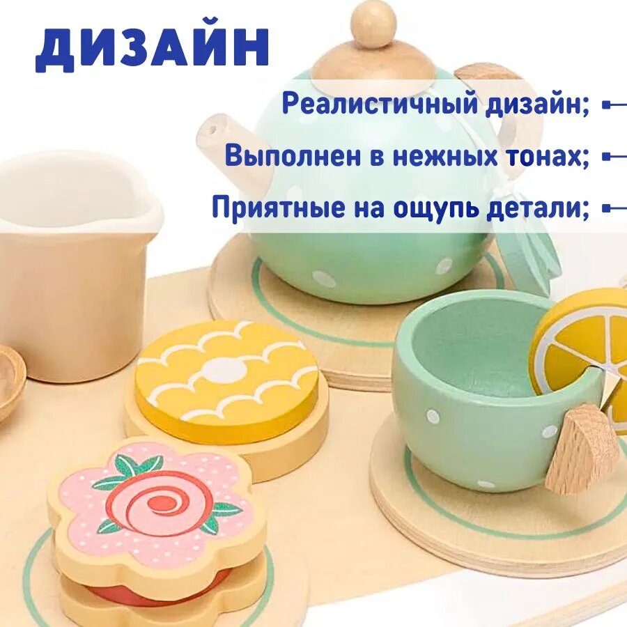 Игрушечная посуда чайный набор деревянный интересное: