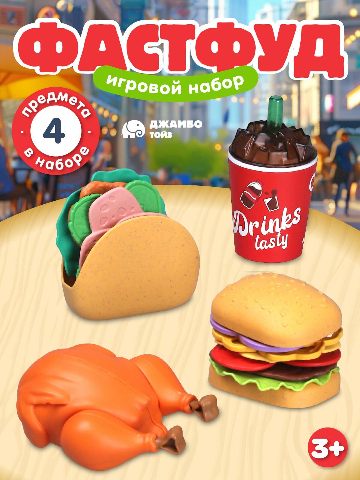 Детский игровой набор продуктов, фаст фуд, играем в повара, игрушечное угощение, ждем гостей, сюжетные игры, JB0213761