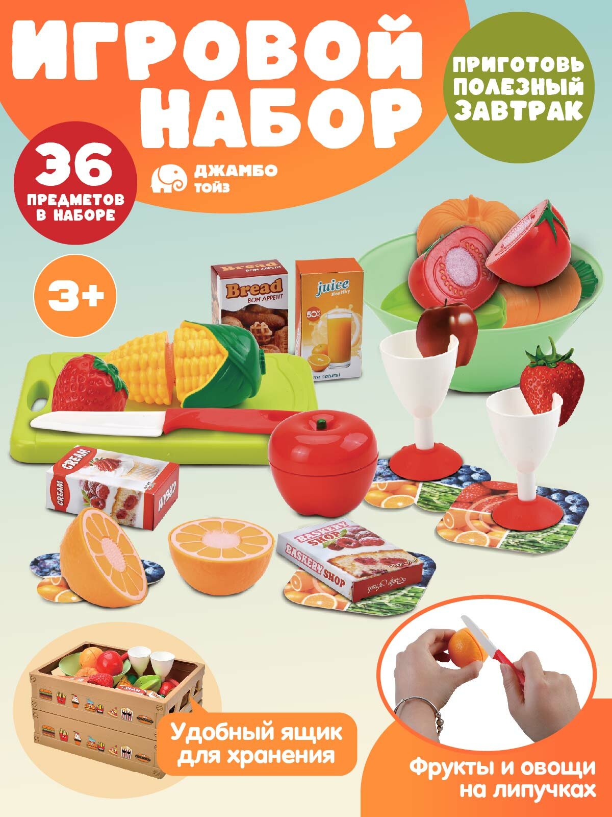 Детский игровой набор продуктов на липучках, играем в повара, игрушечное угощение, ждем гостей, сюжетные игры, JB0213200