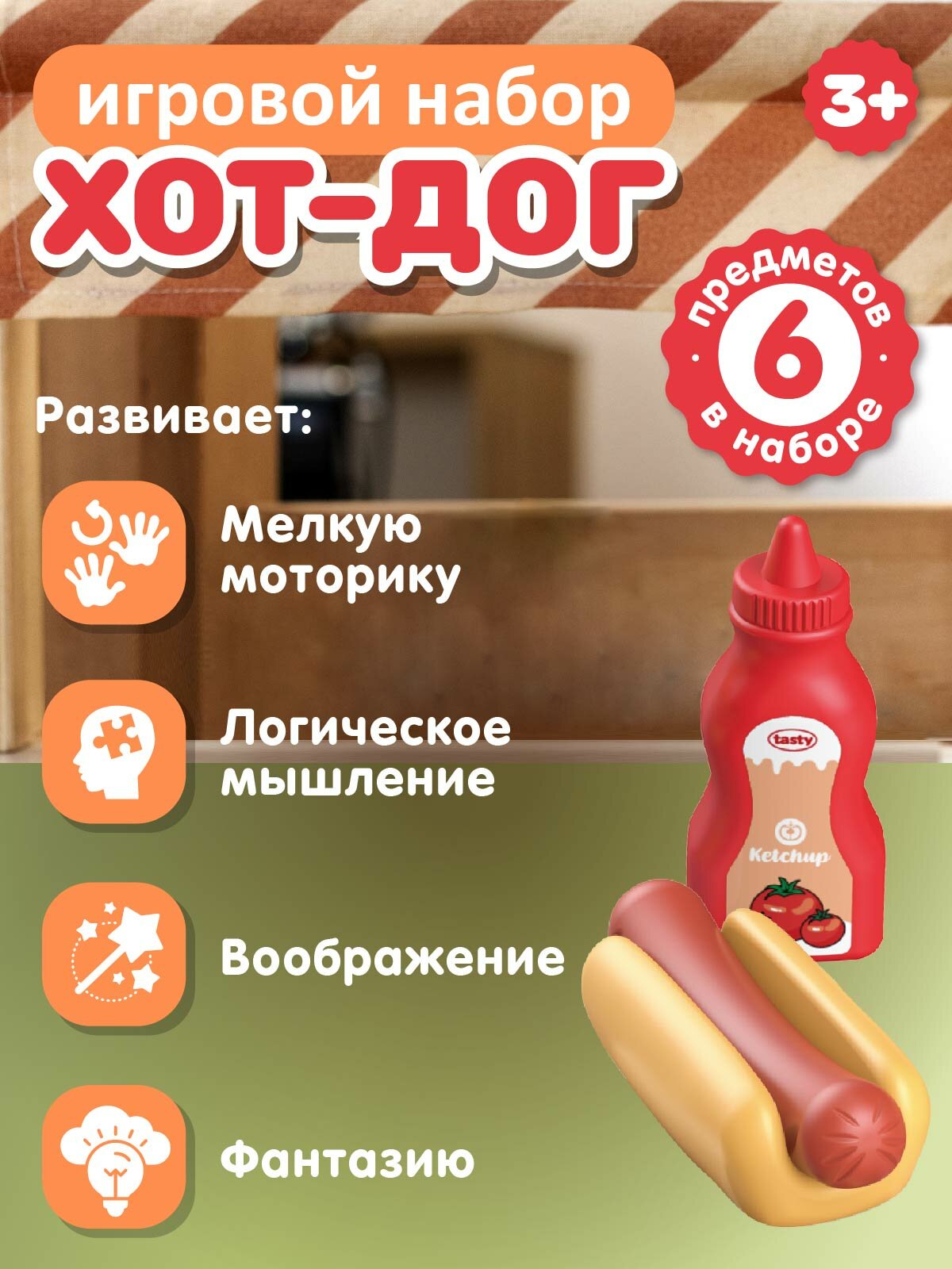Игровой набор "Хот-дог", игрушечная еда, игрушечное угощение, ждем гостей, сюжетные игры, JB0213146 интересное: