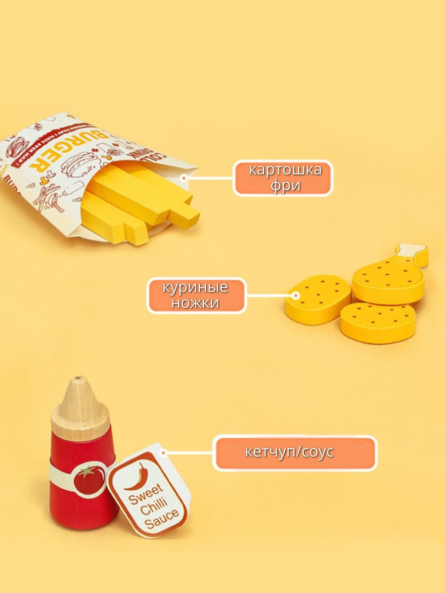 Купить Деревянный игровой набор "Бургер"/ Игрушечная еда фаст фуд/ детская посуда