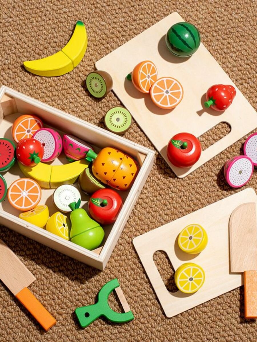 Купить Деревянный детский набор "Ящик фруктов" фрукты на магнитах/ Игрушечная еда/ Игрушки Монтессори