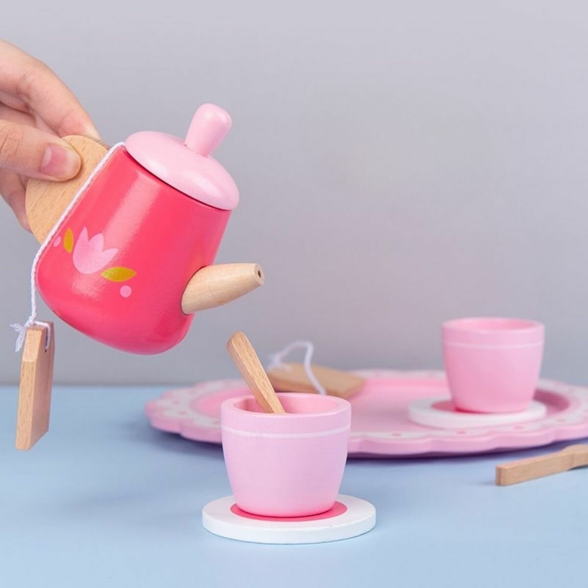 Купить Деревянный игровой набор "Чайный сервиз", розовый/ Игрушечная еда/ детская посуда