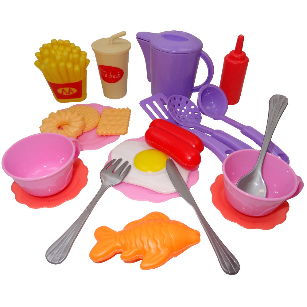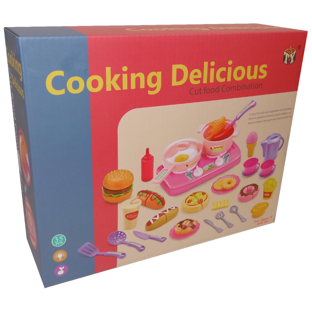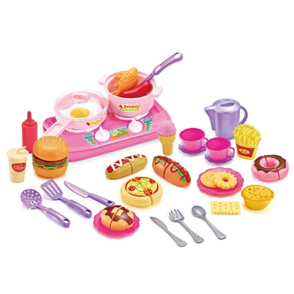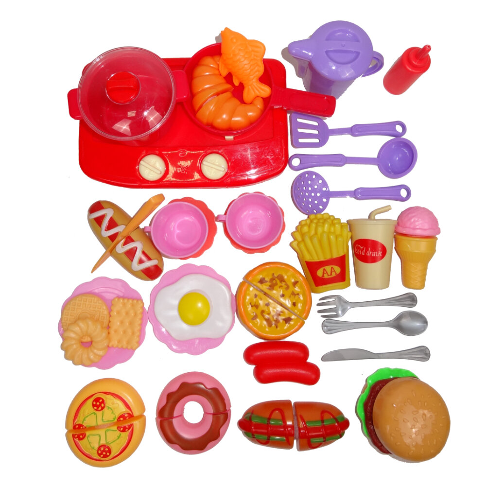 Купить Игровой набор игрушечной посуды с плитой 13,5х20,5х3,5см и продуктами (можно резать) 35 предметов, подарок для девочки, TY2012P-2