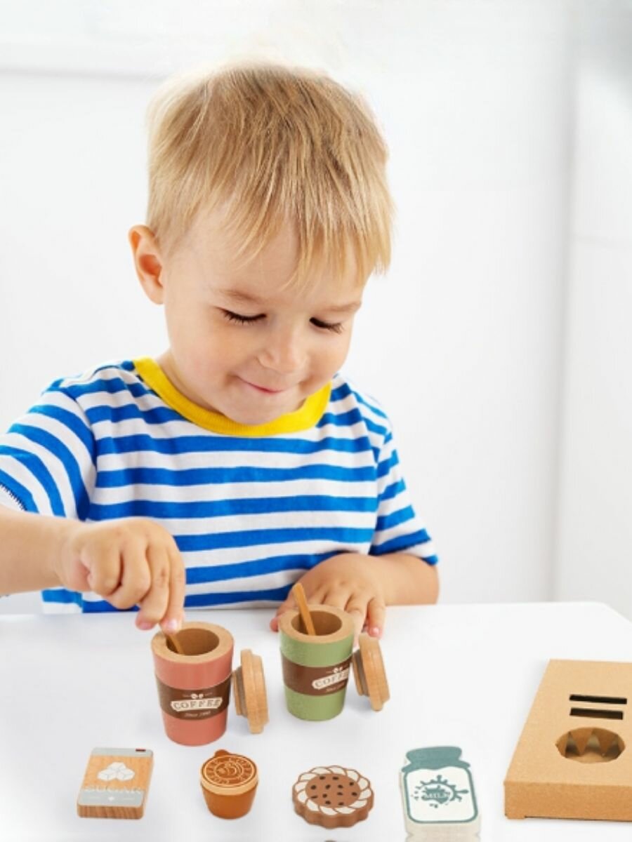 Деревянный игровой набор "Кофе с собой"/ Игрушечная еда/ детская посуда/ ролевые игры интересное: