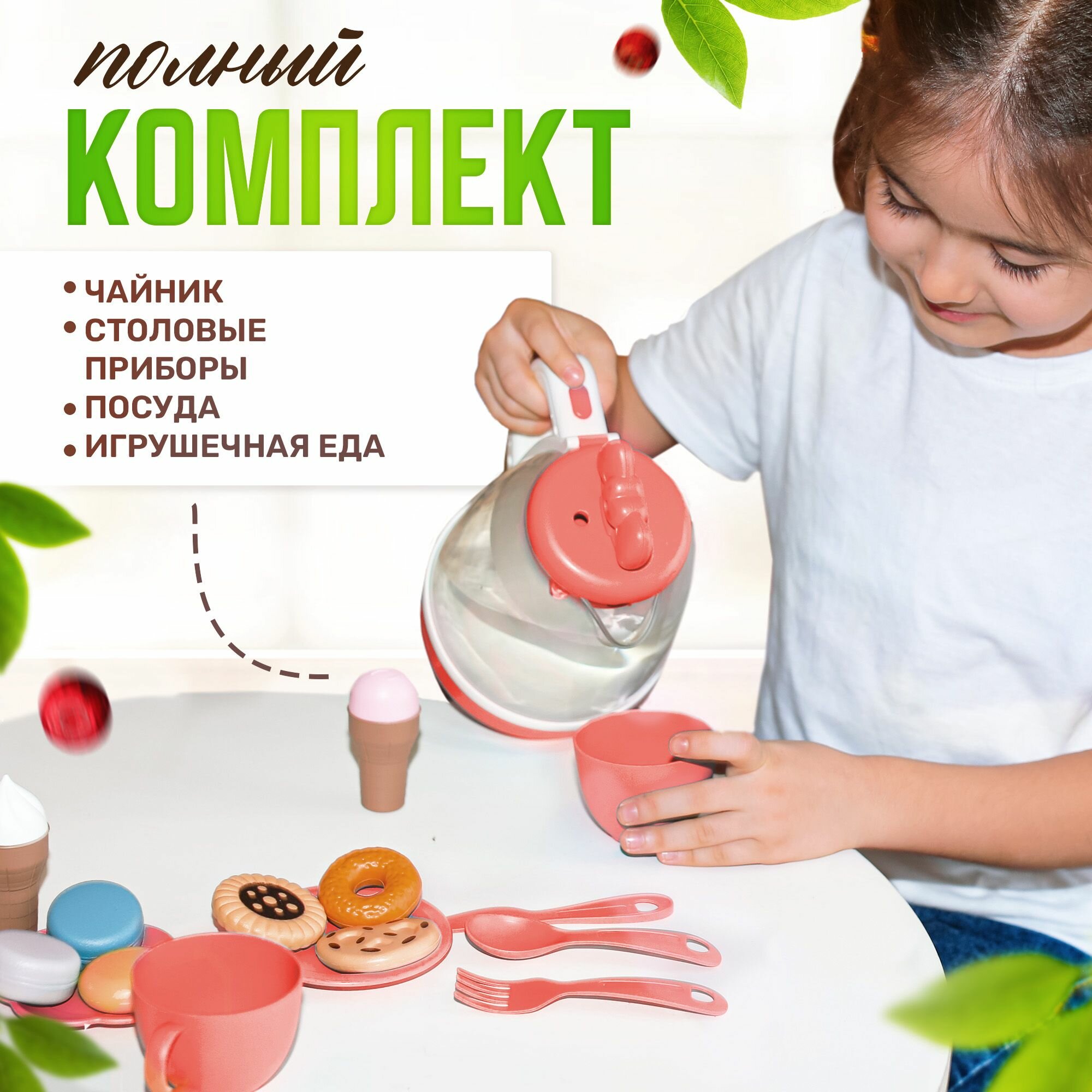 Набор детской посуды игрушечный, чайник с паровым эффектом и аксессуарами интересное: