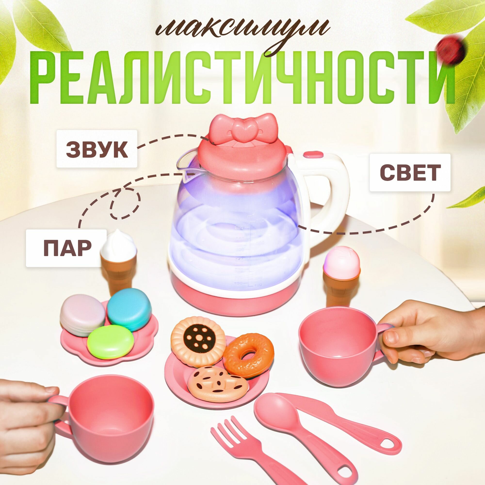 Купить Набор детской посуды игрушечный, чайник с паровым эффектом и аксессуарами