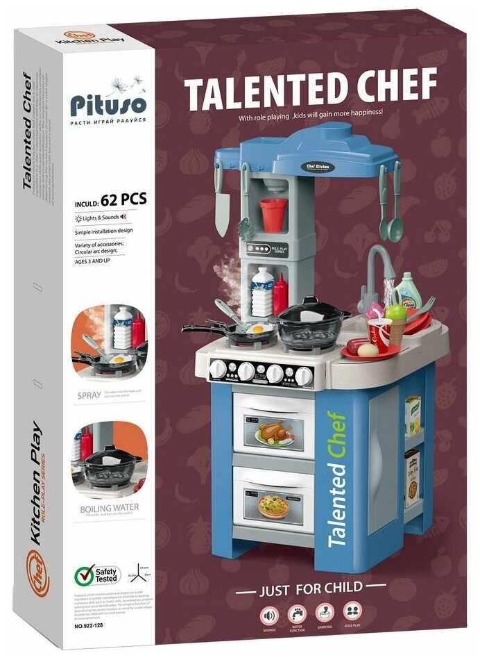 Купить Игровой набор кухня, Pituso "Talented Chef ", 62 элемента, подача воды и пара, подсветка, звук, цвет мульти