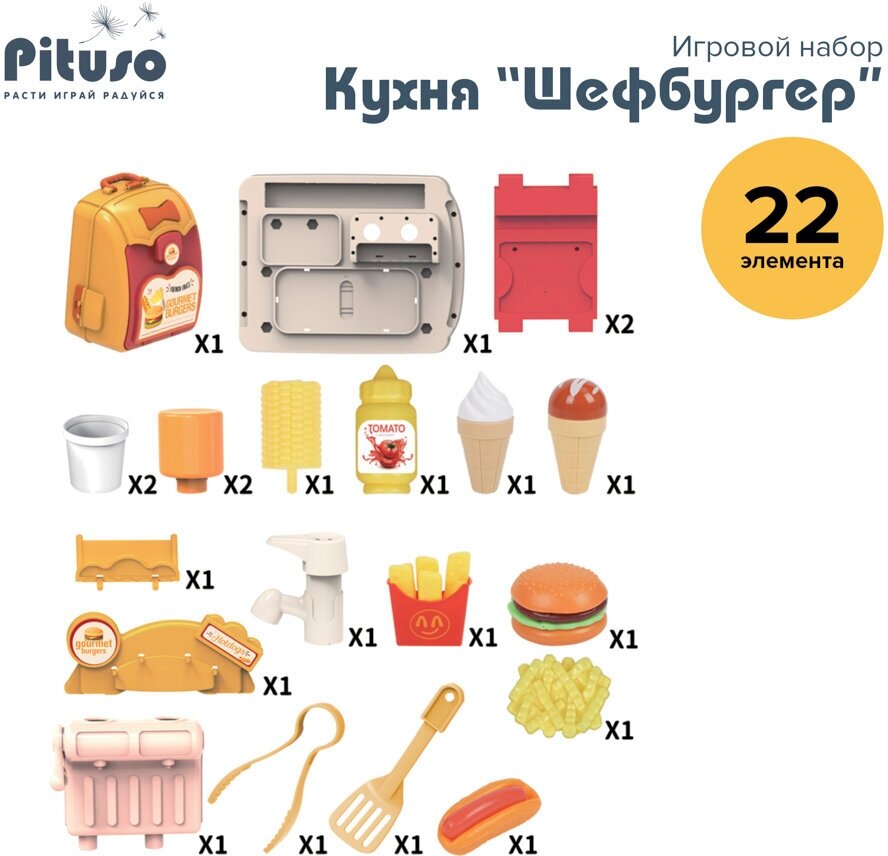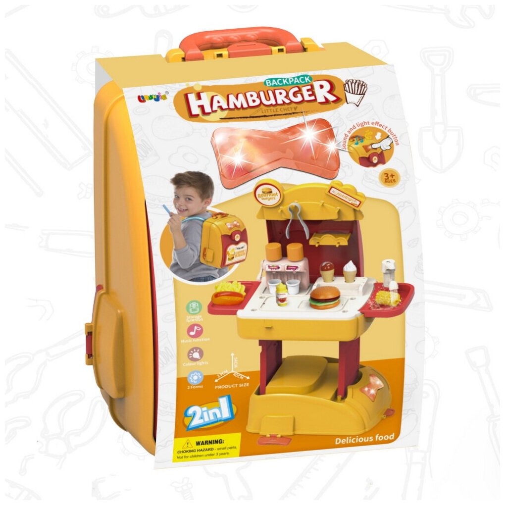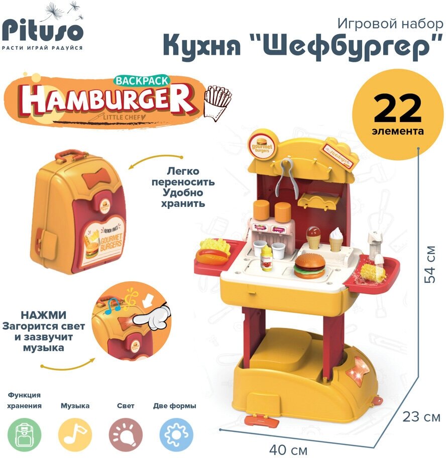 Купить Игровой набор кухня, Pituso "Шефбургер", 22 элемента, рюкзак раскладной, подсветка, звук, цвет мульти