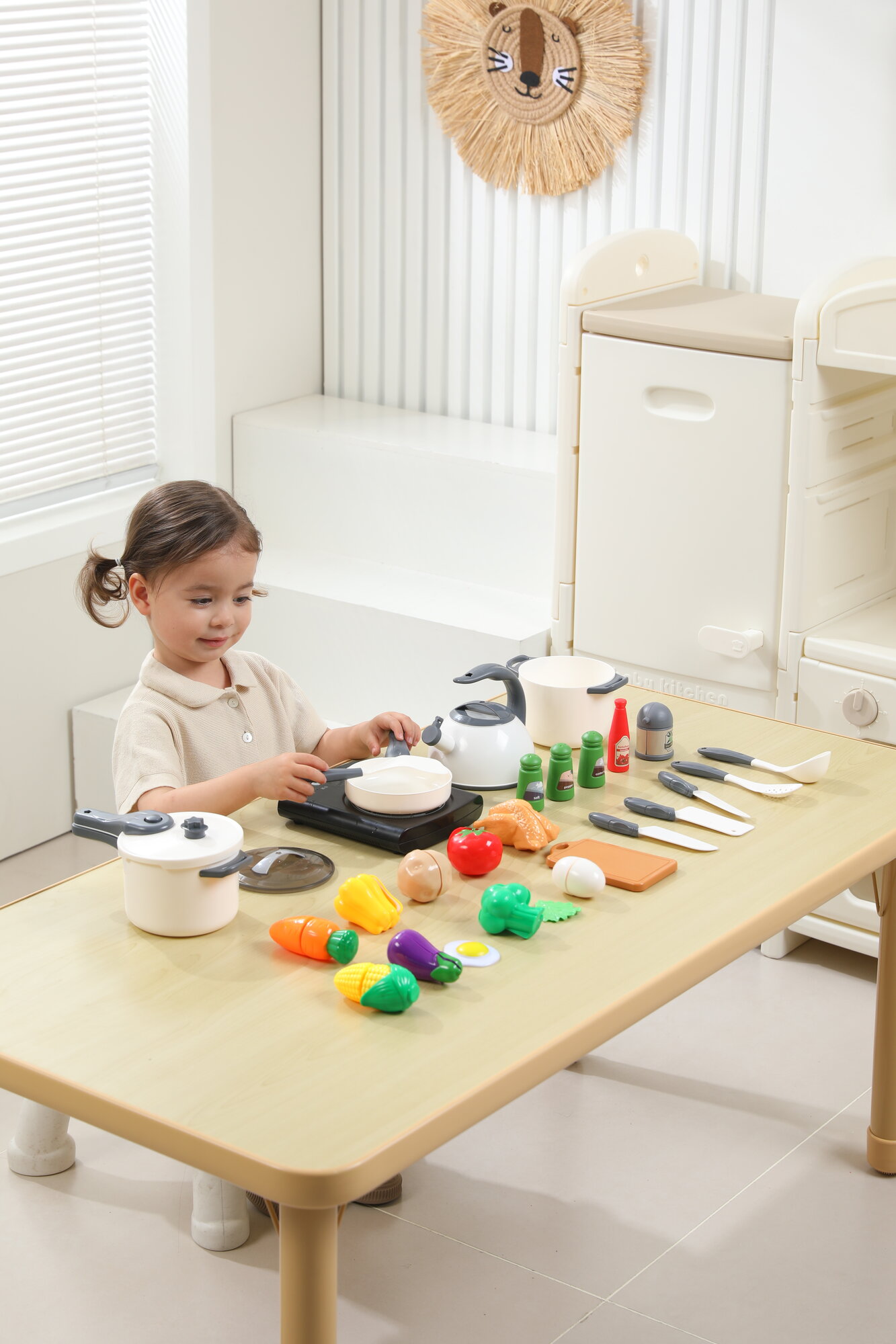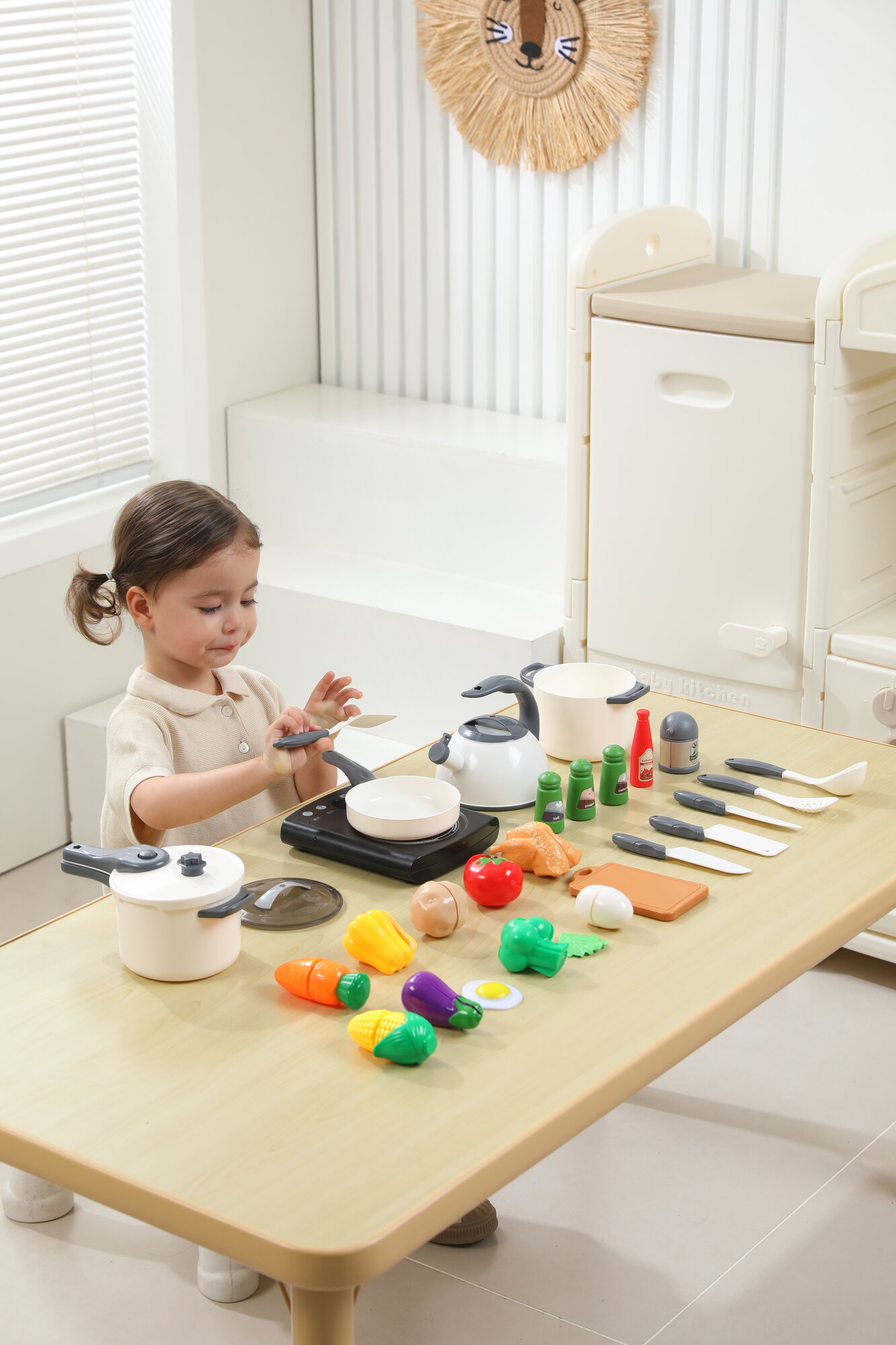 Купить Игрушечный набор посуды и продуктов для детей UNIX Kids 48 предметов, кухонные принадлежности и овощи на липучках