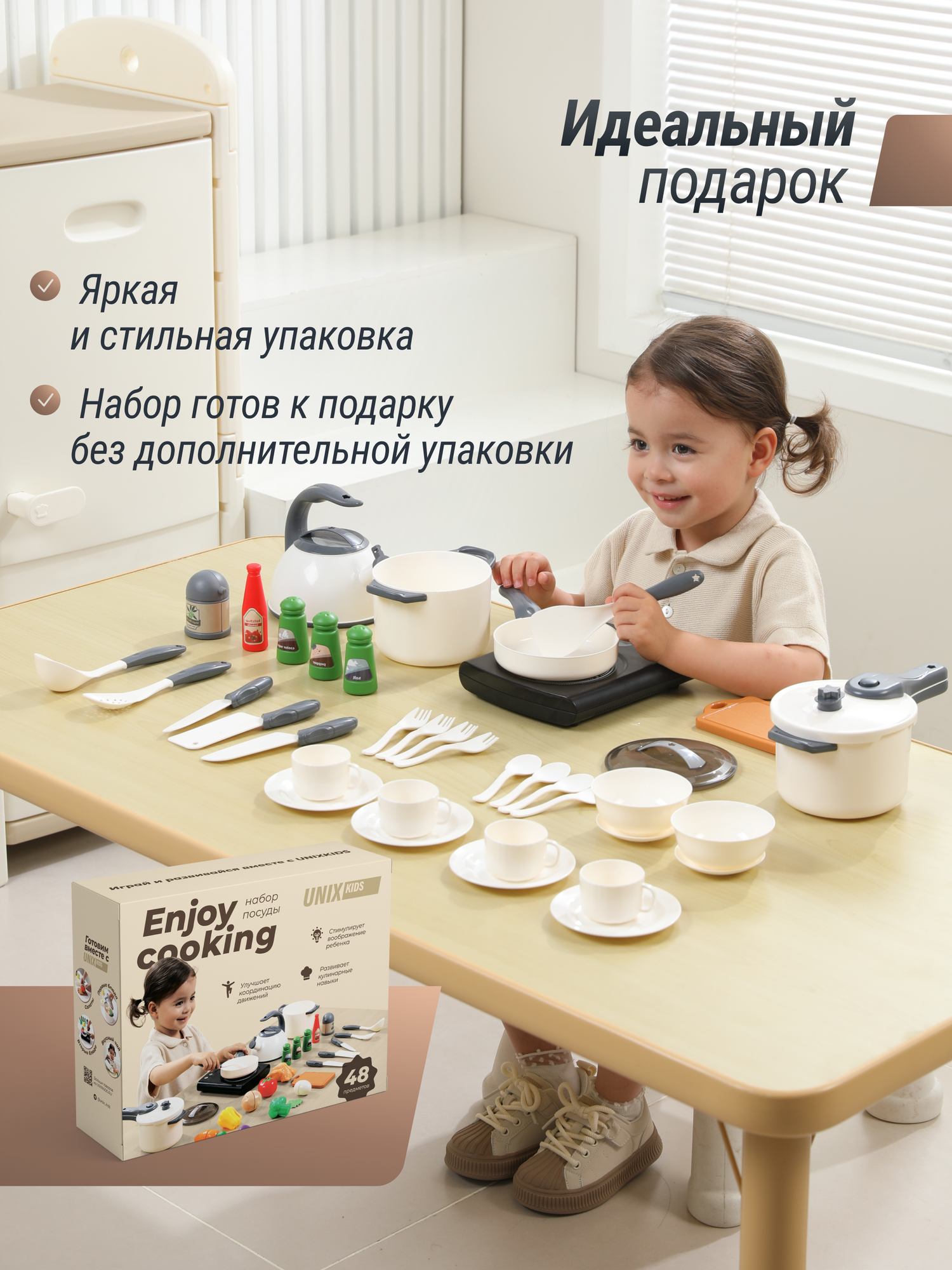 Ниже Вы можете прочитать отзывы на Игрушечный набор посуды и продуктов для детей UNIX Kids 48 предметов, кухонные принадлежности и овощи на липучках, ознакомится с подробными характеристиками, посмотреть интересные обзоры и фотографии на Игрушечный набор посуды и продуктов для детей UNIX Kids 48 предметов, кухонные принадлежности и овощи на липучках.