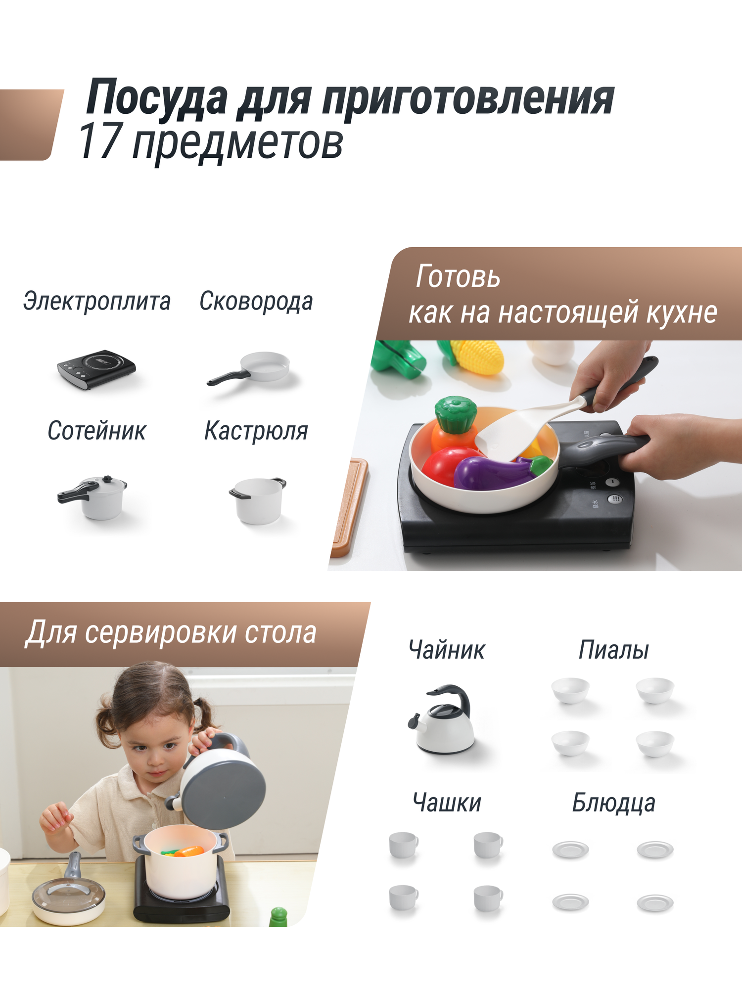 Игрушечный набор посуды и продуктов для детей UNIX Kids 48 предметов, кухонные принадлежности и овощи на липучках интересное: