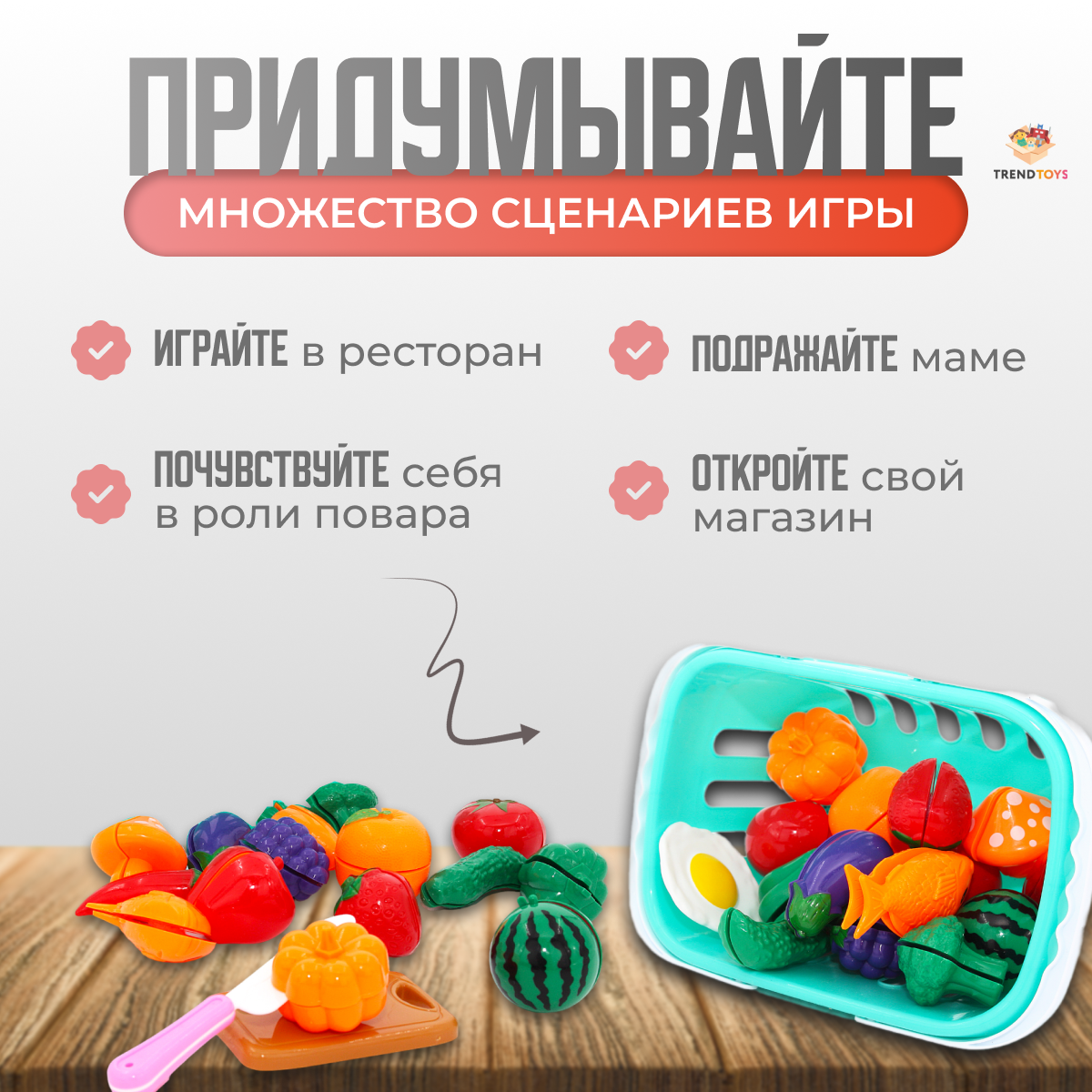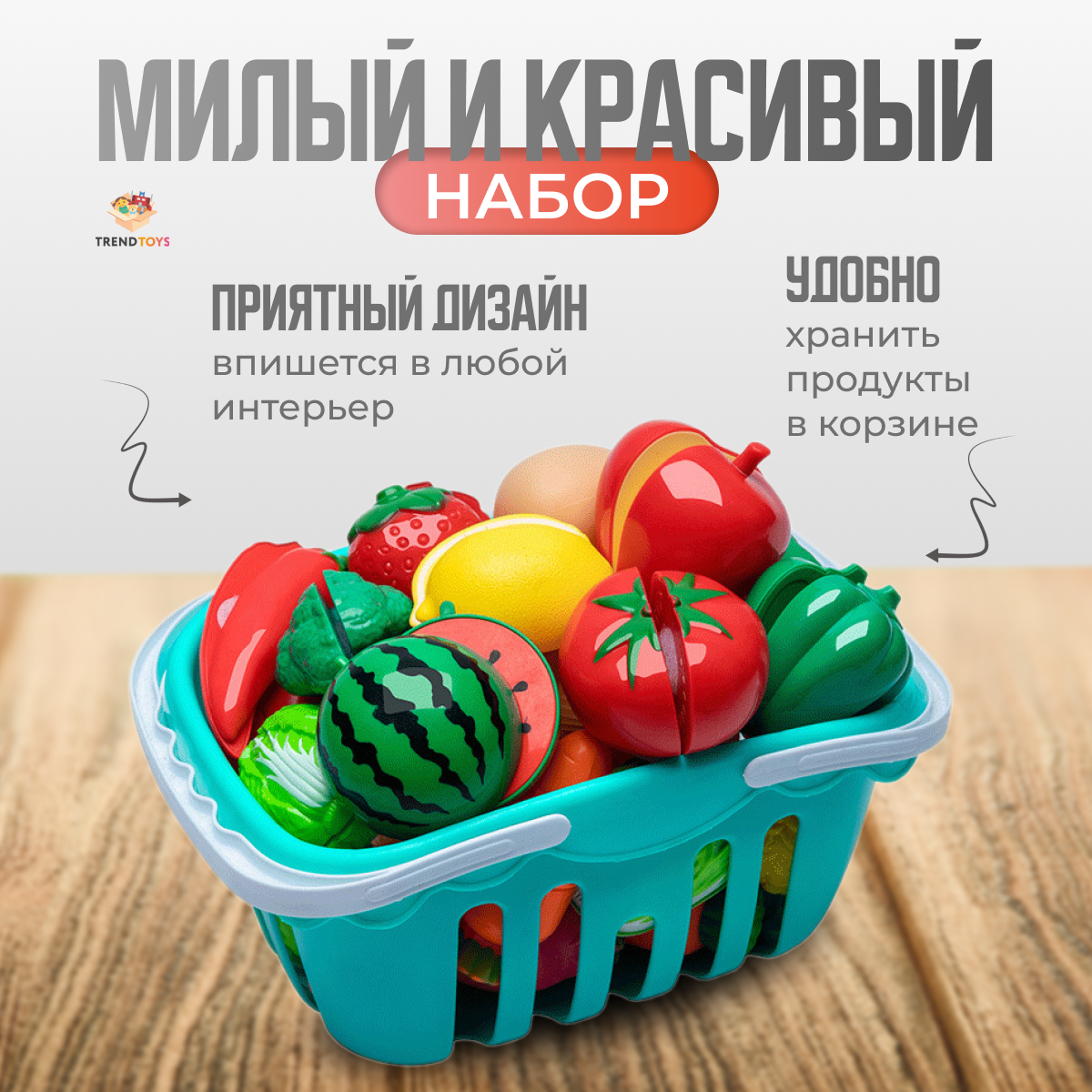 Игрушечная еда фрукты овощи на липучках TrendToys, Набор игрушечные продукты в корзинке 33 предмета