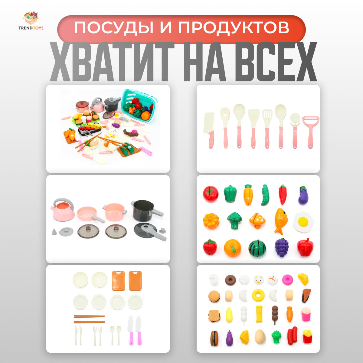 Игрушечные продукты TrendToys фрукты и овощи на липучках, игрушечная посуда для детей, большой набор 91 предмет интересное: