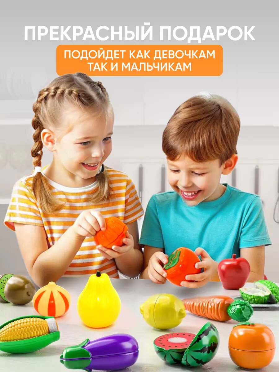 Игрушечная еда фрукты овощи на липучках TrendToys, Набор игрушечные продукты в корзинке 33 предмета интересное: